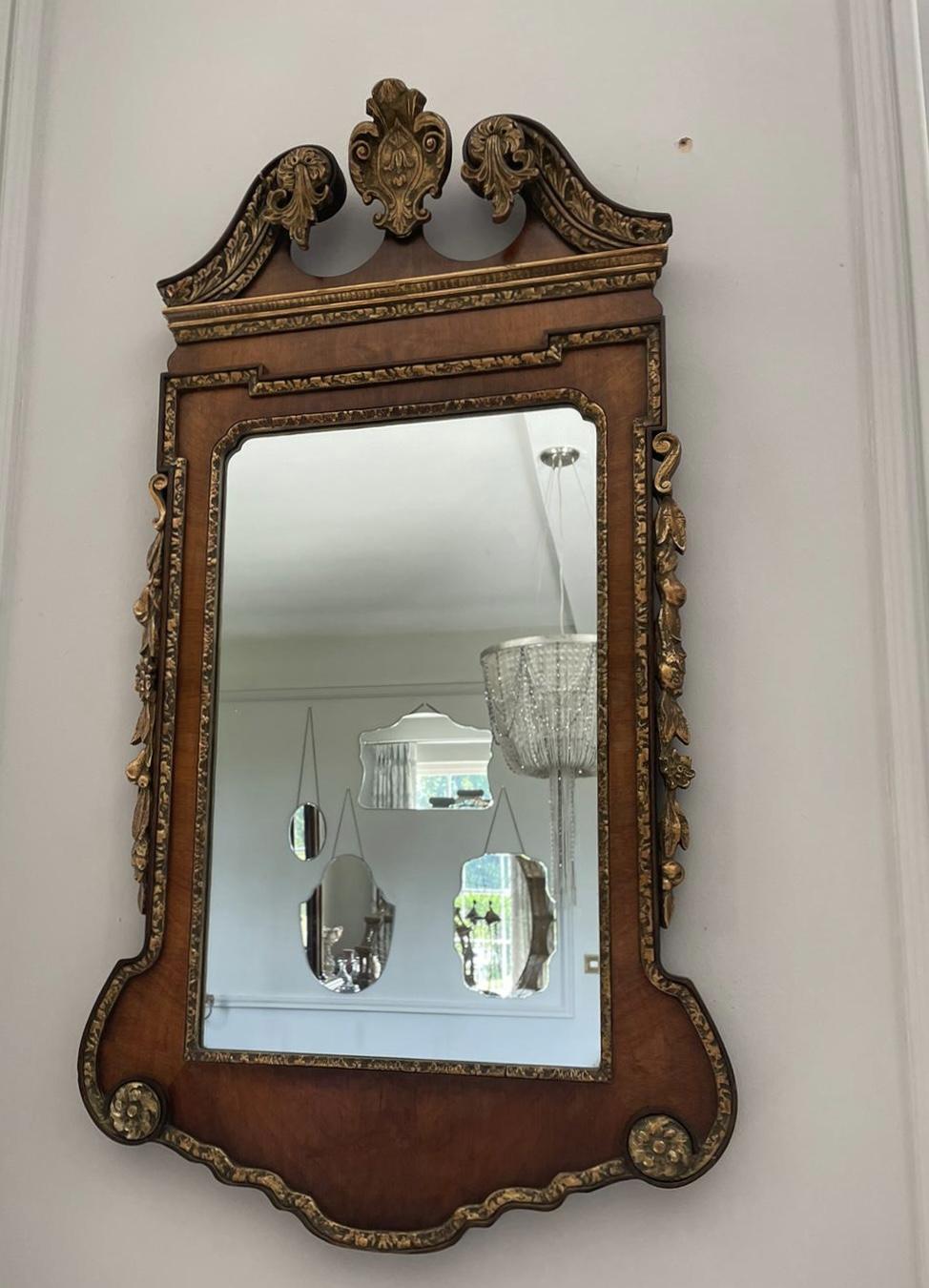 Fine Antique Carved Walnut & Gilt Decoration Mirror