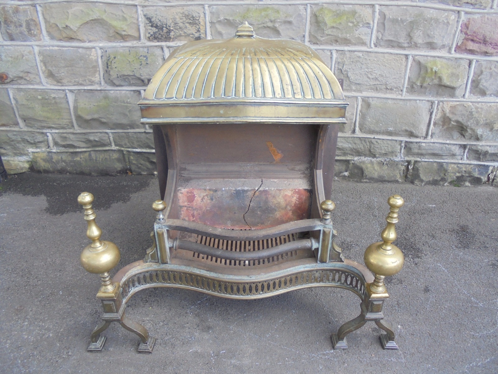 Fine Antique Cast Iron & Brass Fire Basket