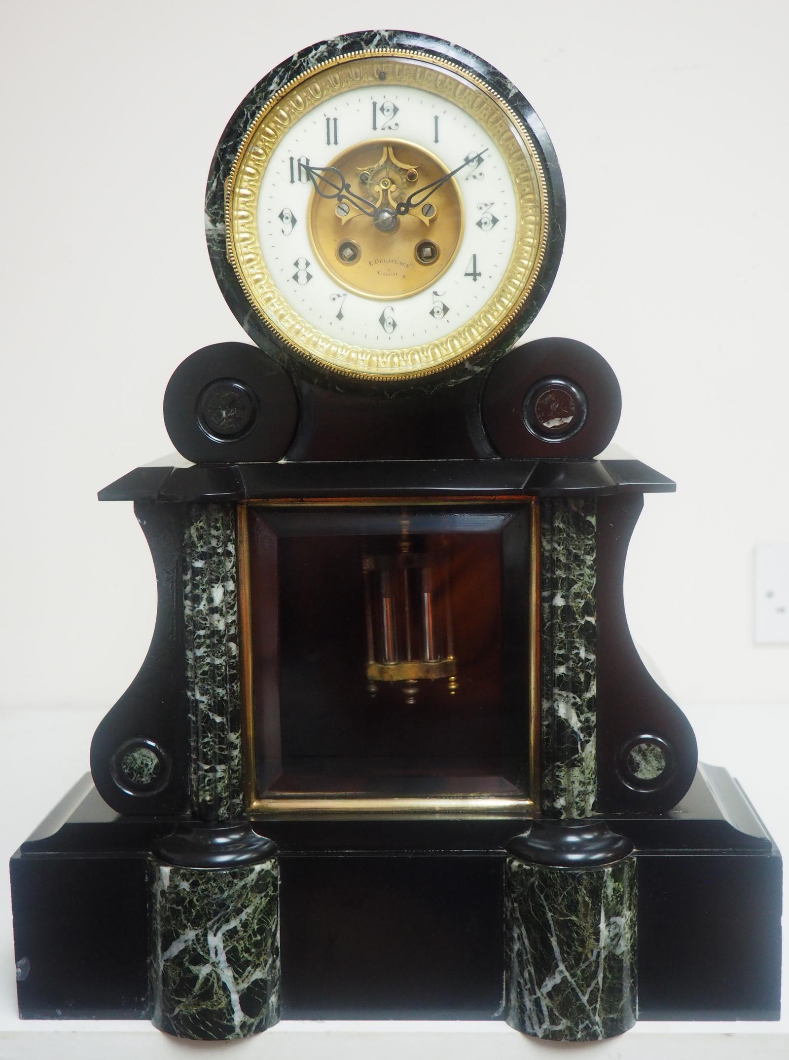 Fine Antique French Slate & Marble Regulator Mantel Clock