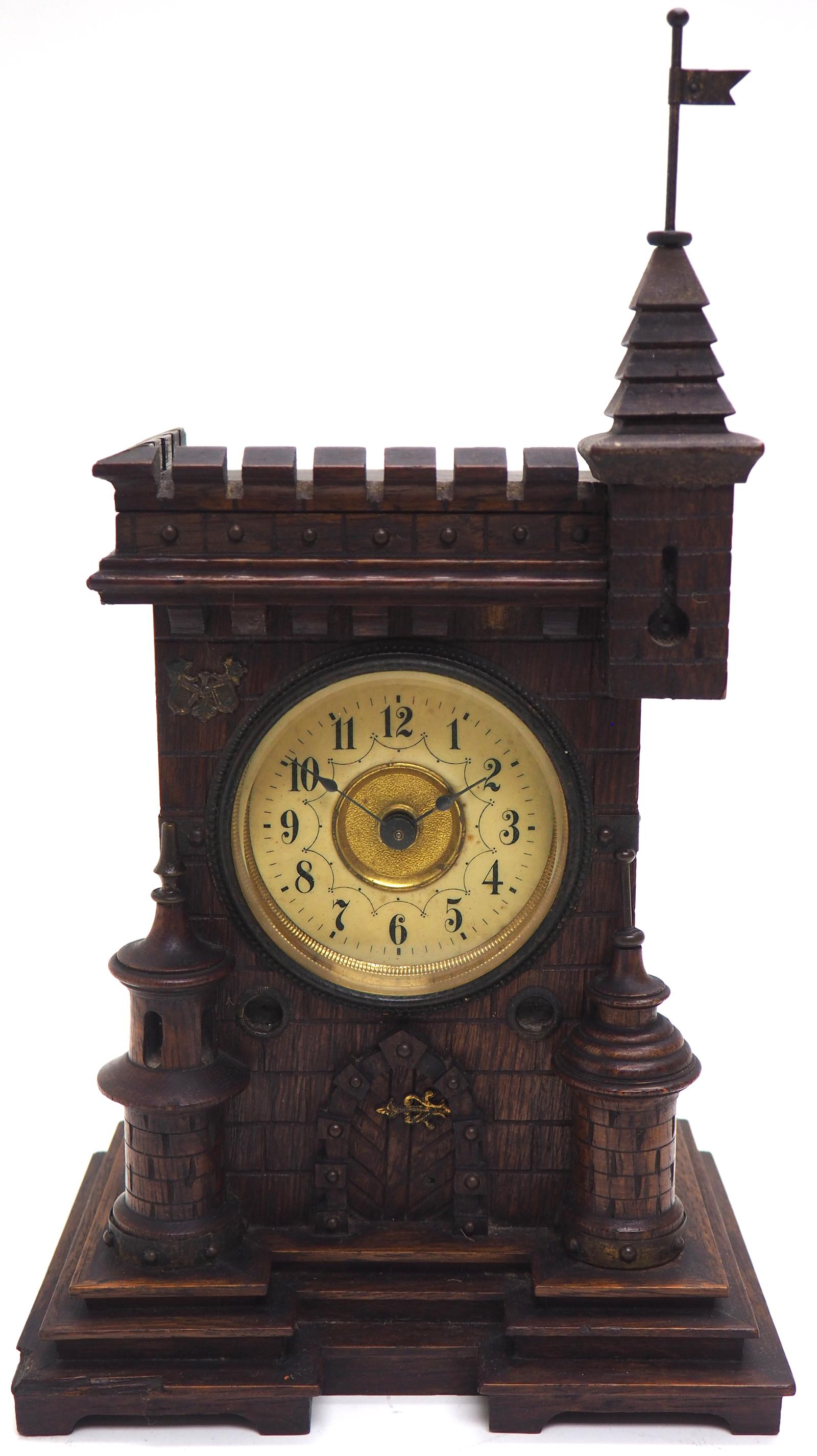 Fine Antique German Castle 8-day Carved Black Forest Mantle Clock