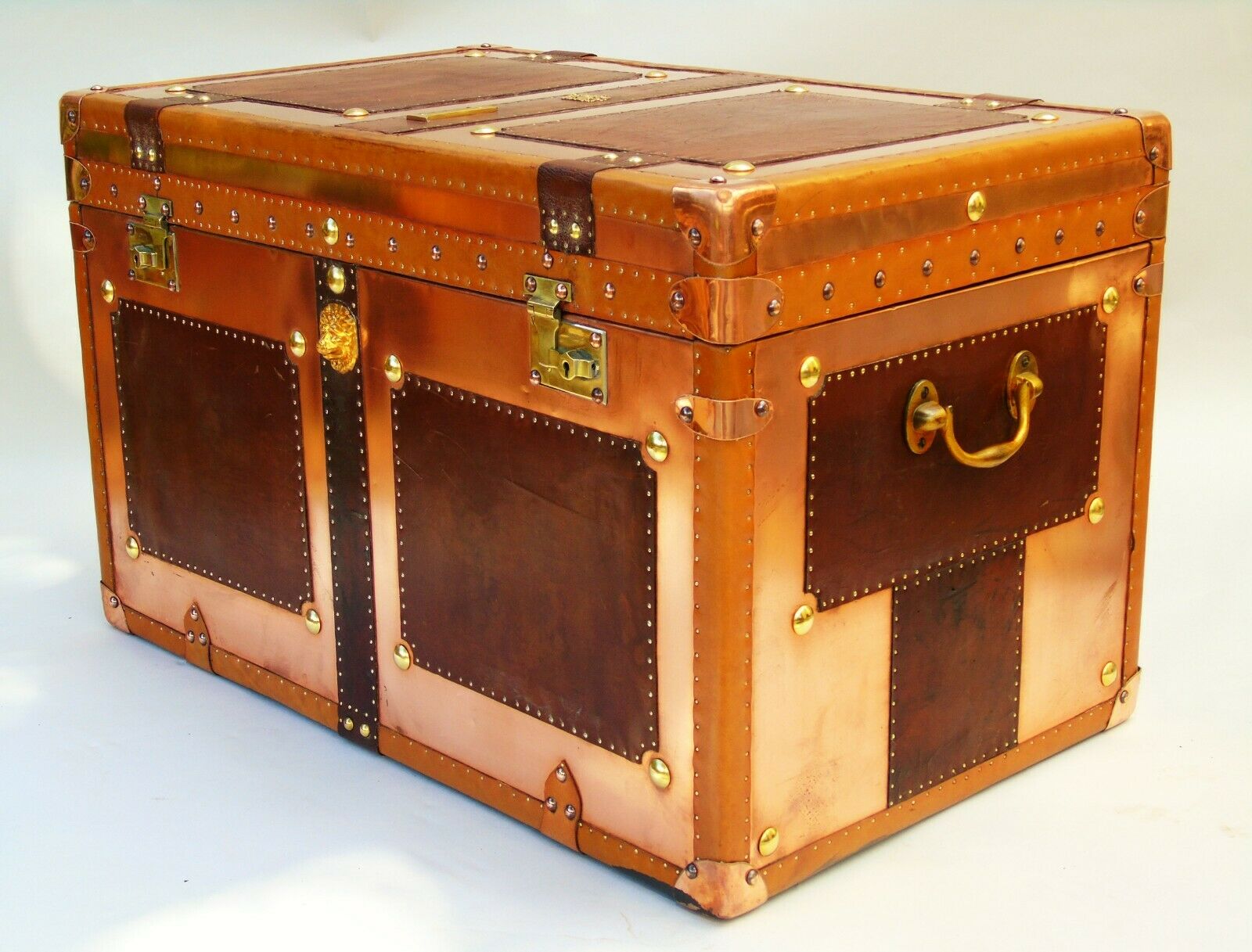Fine Antique Military Leather & Copper Chest (1 of 1)