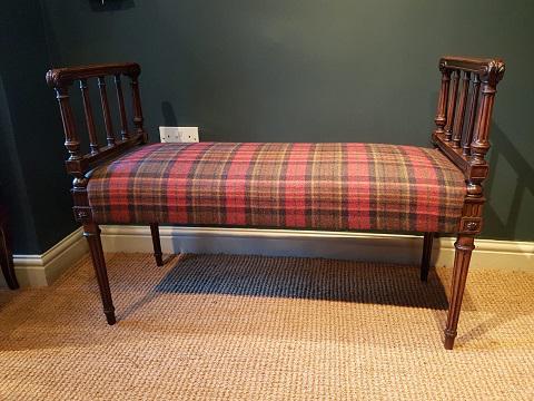 Fine Antique Upholstered Mahogany Reeded Leg Double Stool
