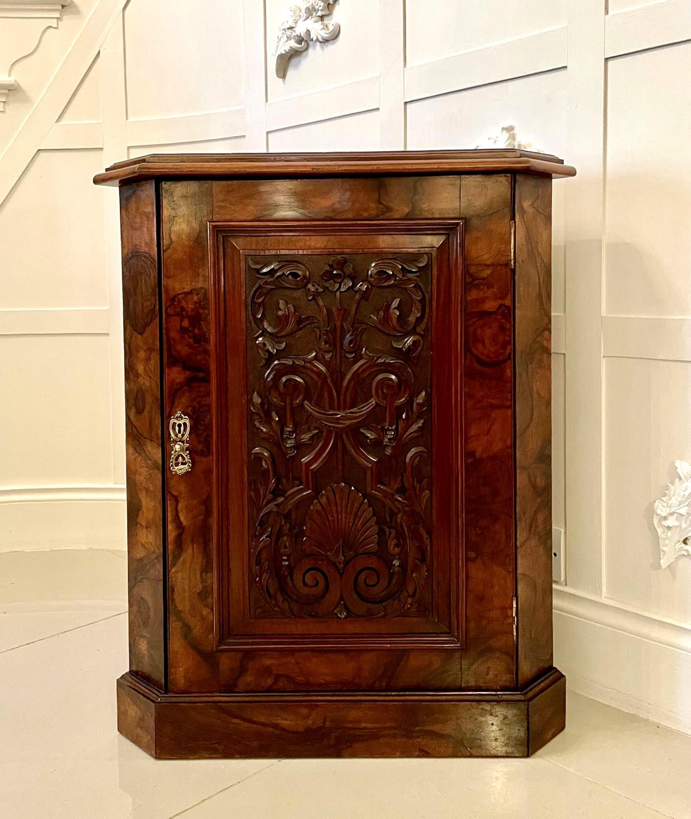 Fine Antique Victorian Burr Walnut Carved Corner Cupboard