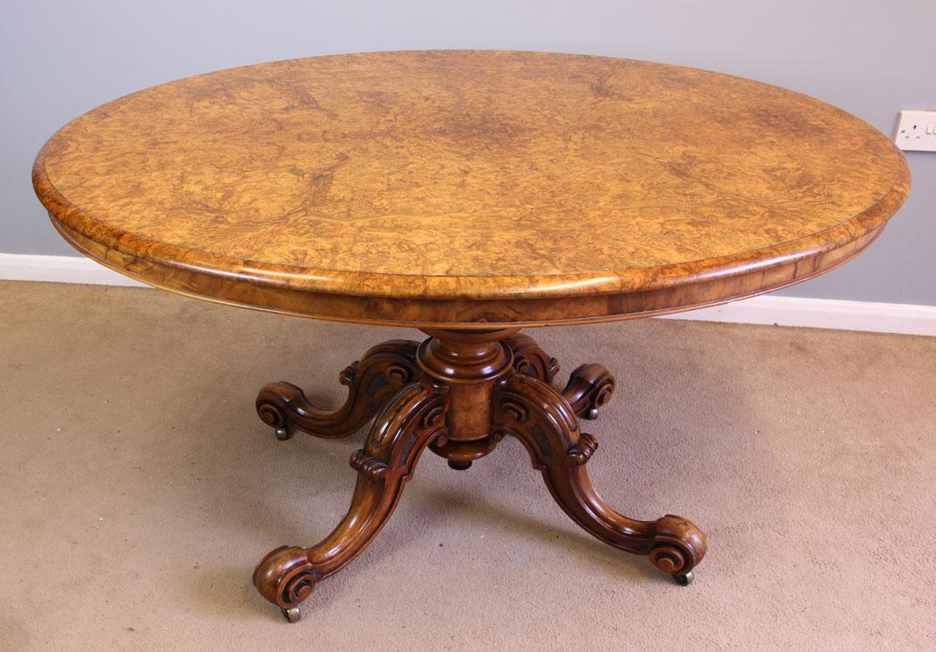 Fine Antique Victorian Burr Walnut Loo Centre Table