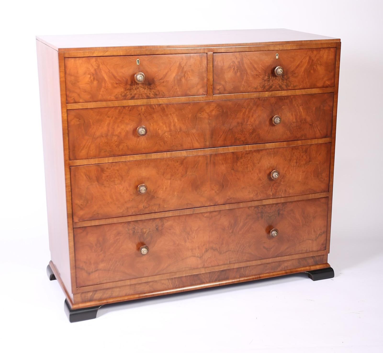 Fine Art Deco Burr Walnut 5 Drawer Chest c.1930