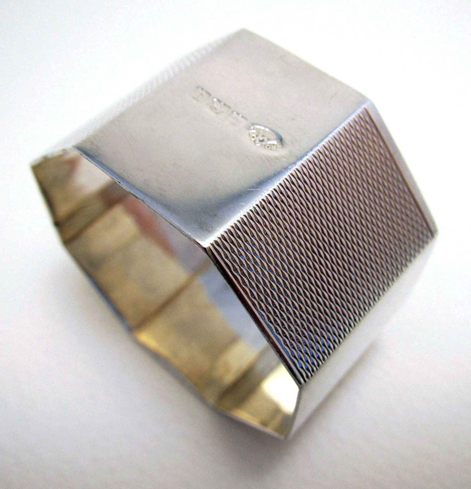 Fine Art Deco Hallmarked Solid Sterling Silver English Hexagonal Serviette Napkin Ring 1932