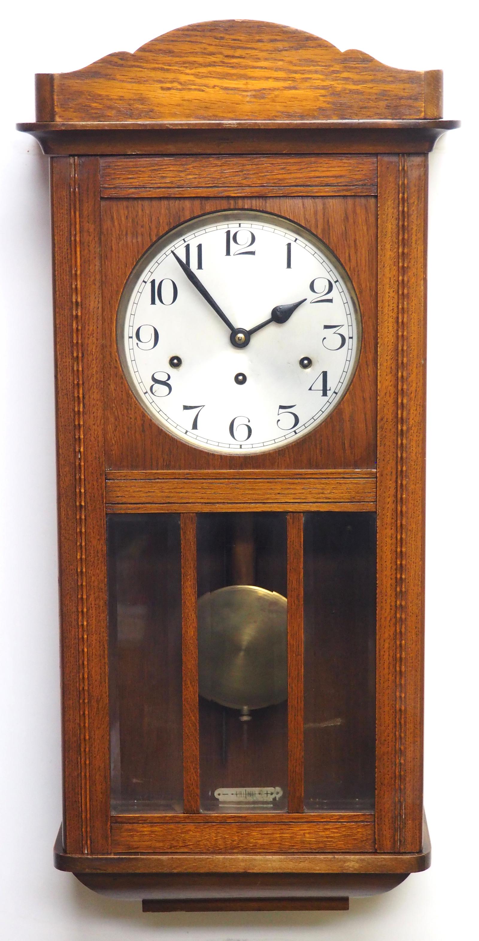 Fine Art Deco Musical Westminster Chime Wall Clock 8-day Solid Oak with Bevelled Glass Panels (1 of 9)