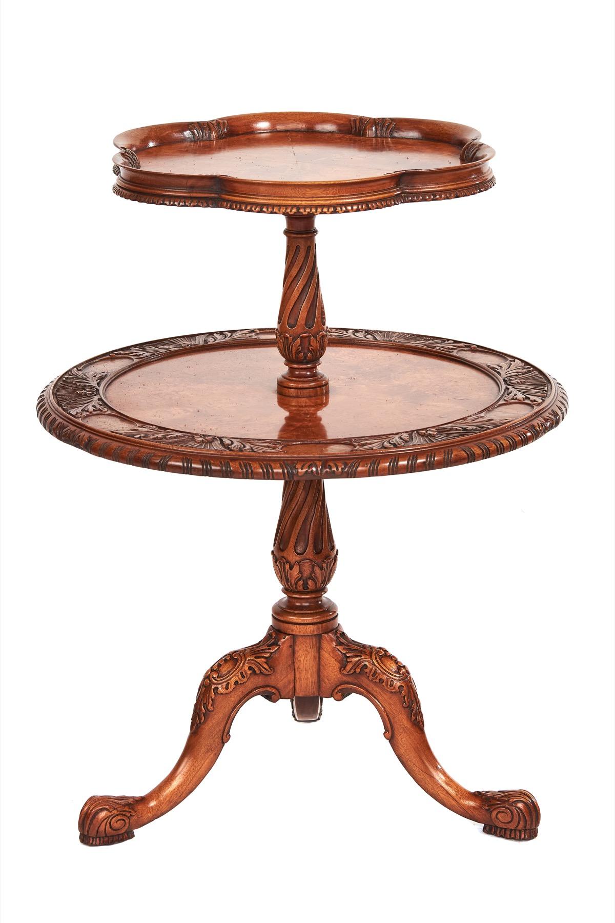 Fine Burr Walnut & Carved 2 Tier Table c.1920