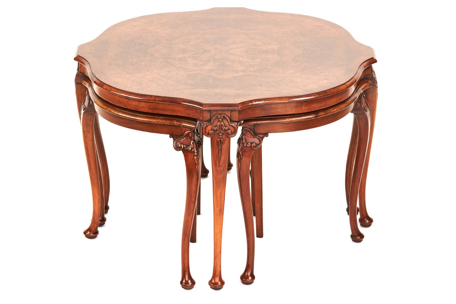 Fine Burr Walnut Nest of 4 Tables c.1930