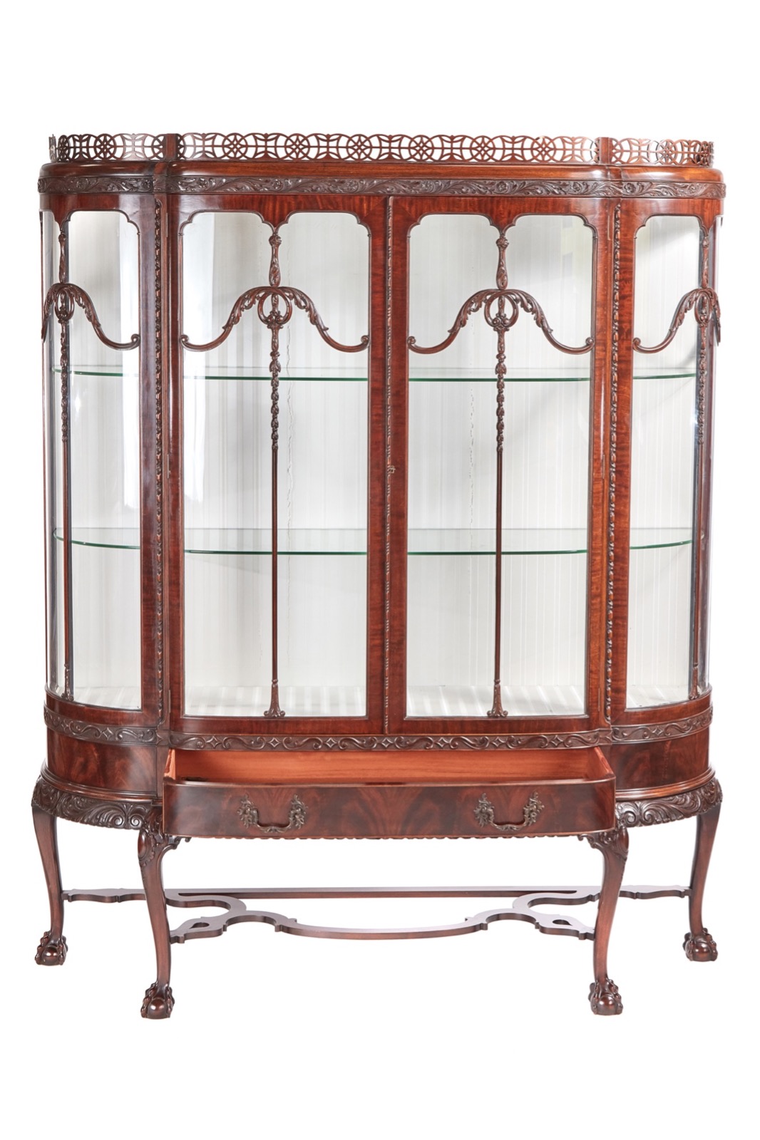Fine Chippendale Revival Carved Mahogany Breakfront Display Cabinet c.1900