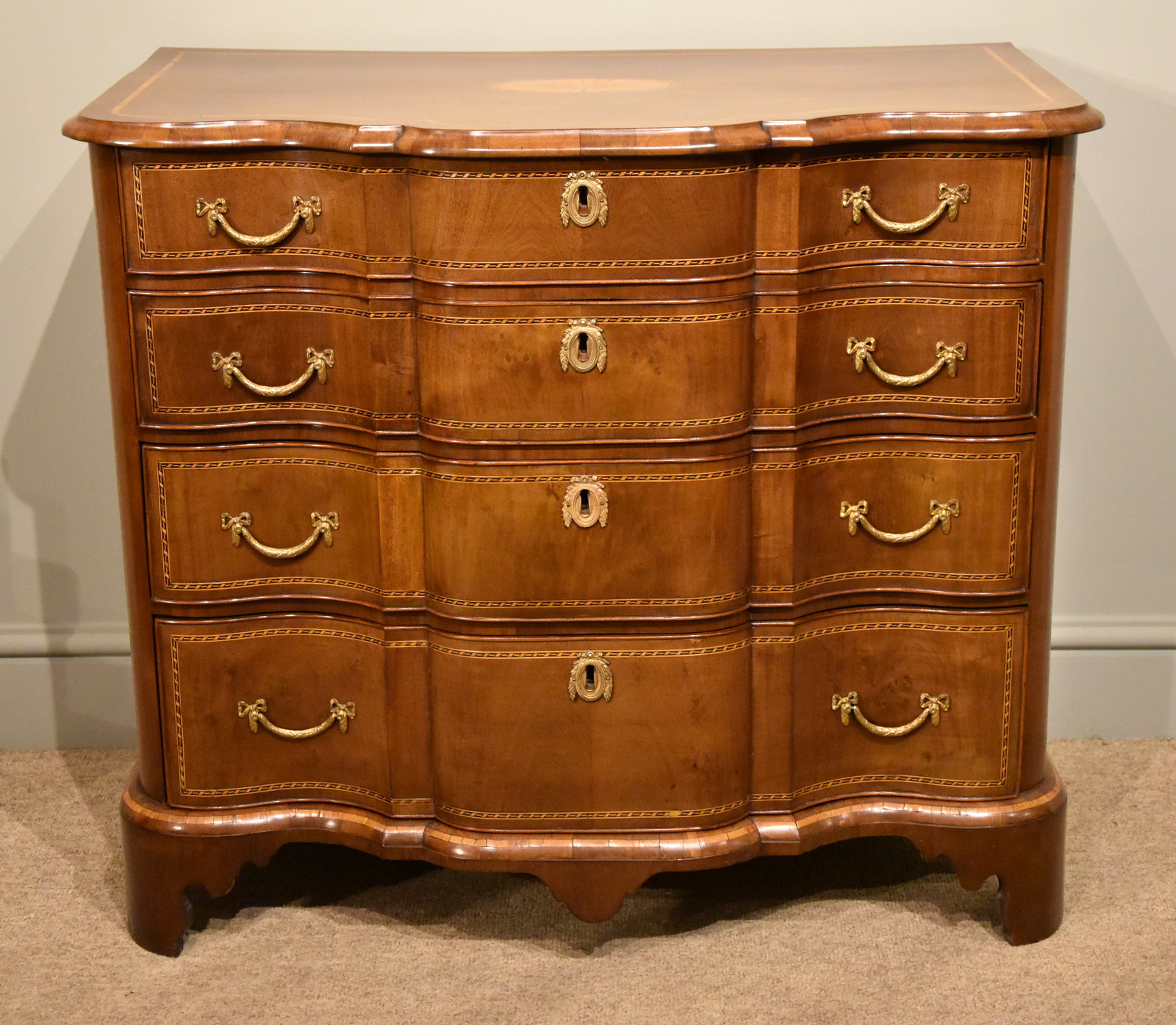 Fine Dutch Mahogany Inlaid Breakfront Chest of Drawers