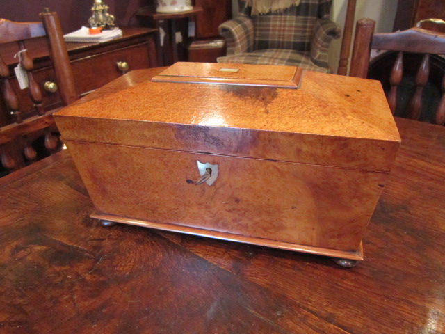 Fine Early Victorian Burr Mulberry Tea Caddy