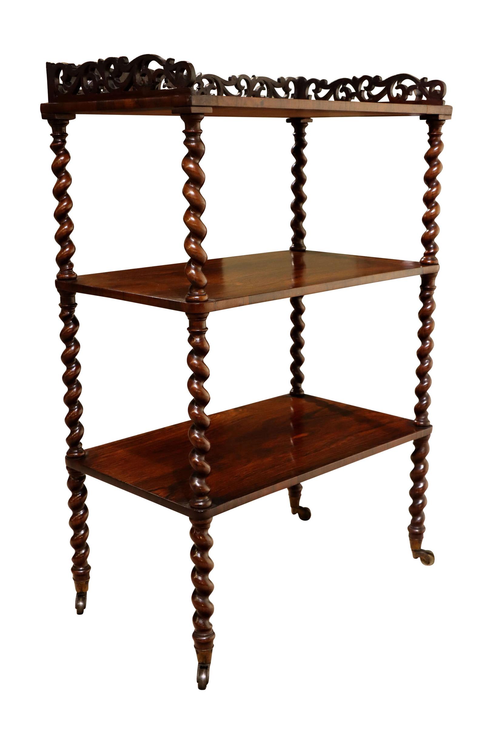 Fine Early Victorian Rosewood Whatnot with Barley Twist Supports c.1860