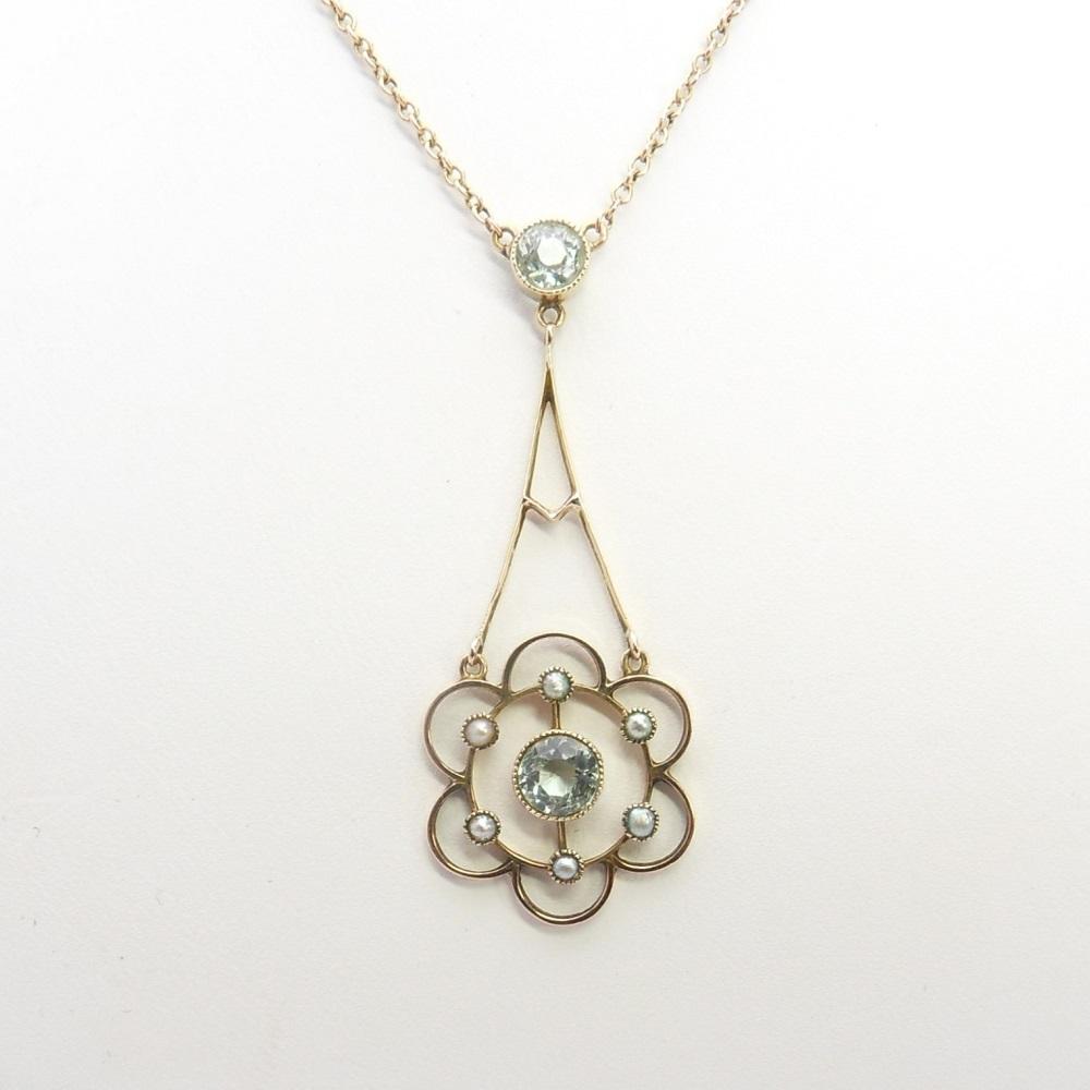 Fine Edwardian Aquamarine & Pearl Necklace Marked 9ct