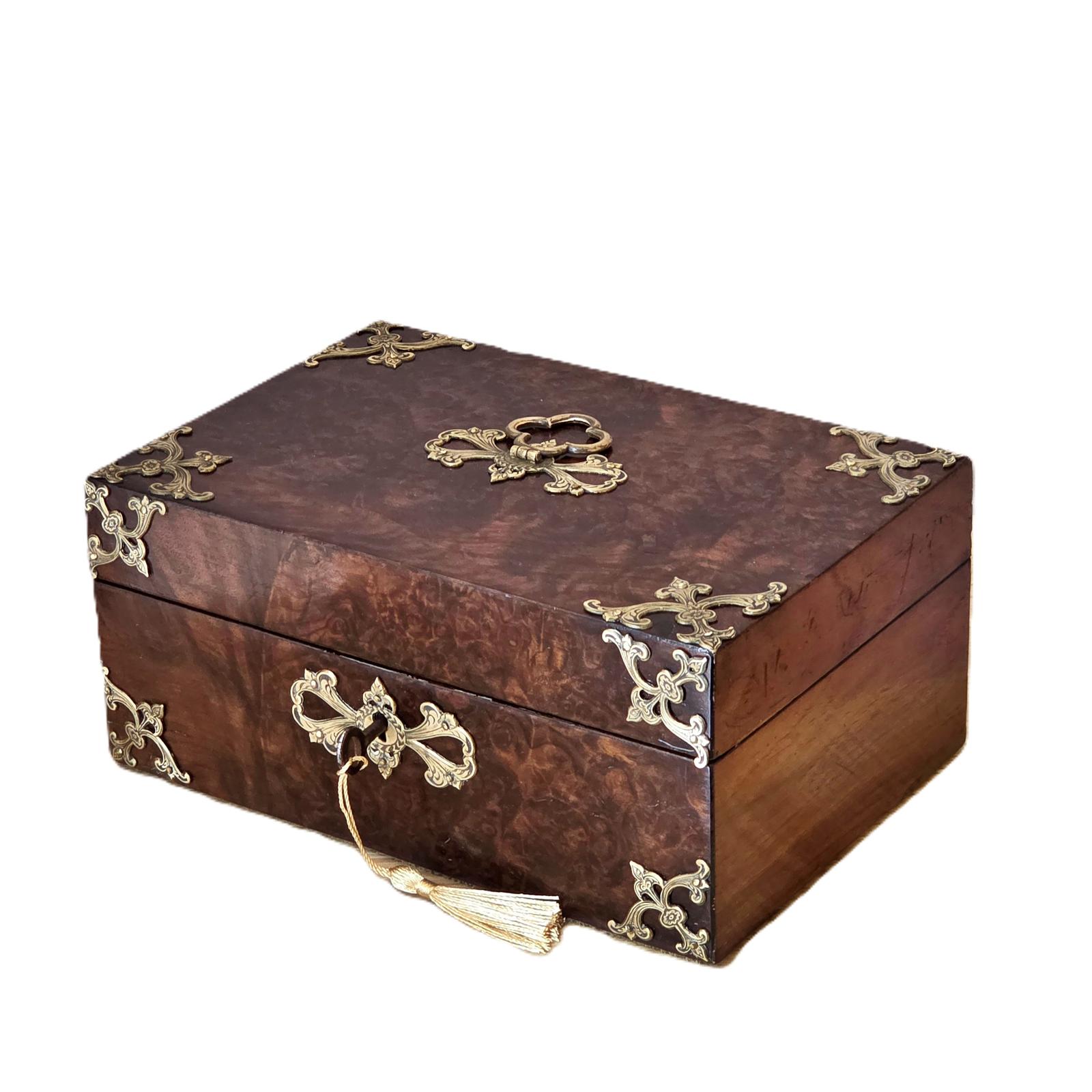Fine Edwardian Burr Walnut & Brass Mounted Jewellery Box
