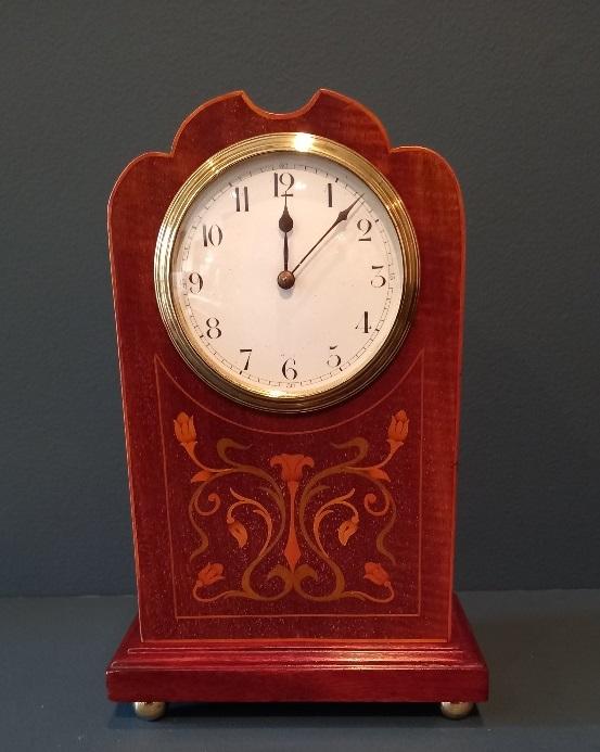 Fine Edwardian Fruitwood Inlaid Mantel Clock