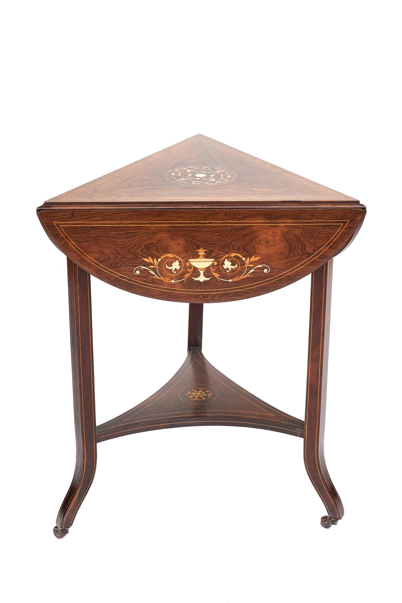 Fine Edwardian Inlaid Rosewood Drop Leaf Table (1 of 6)