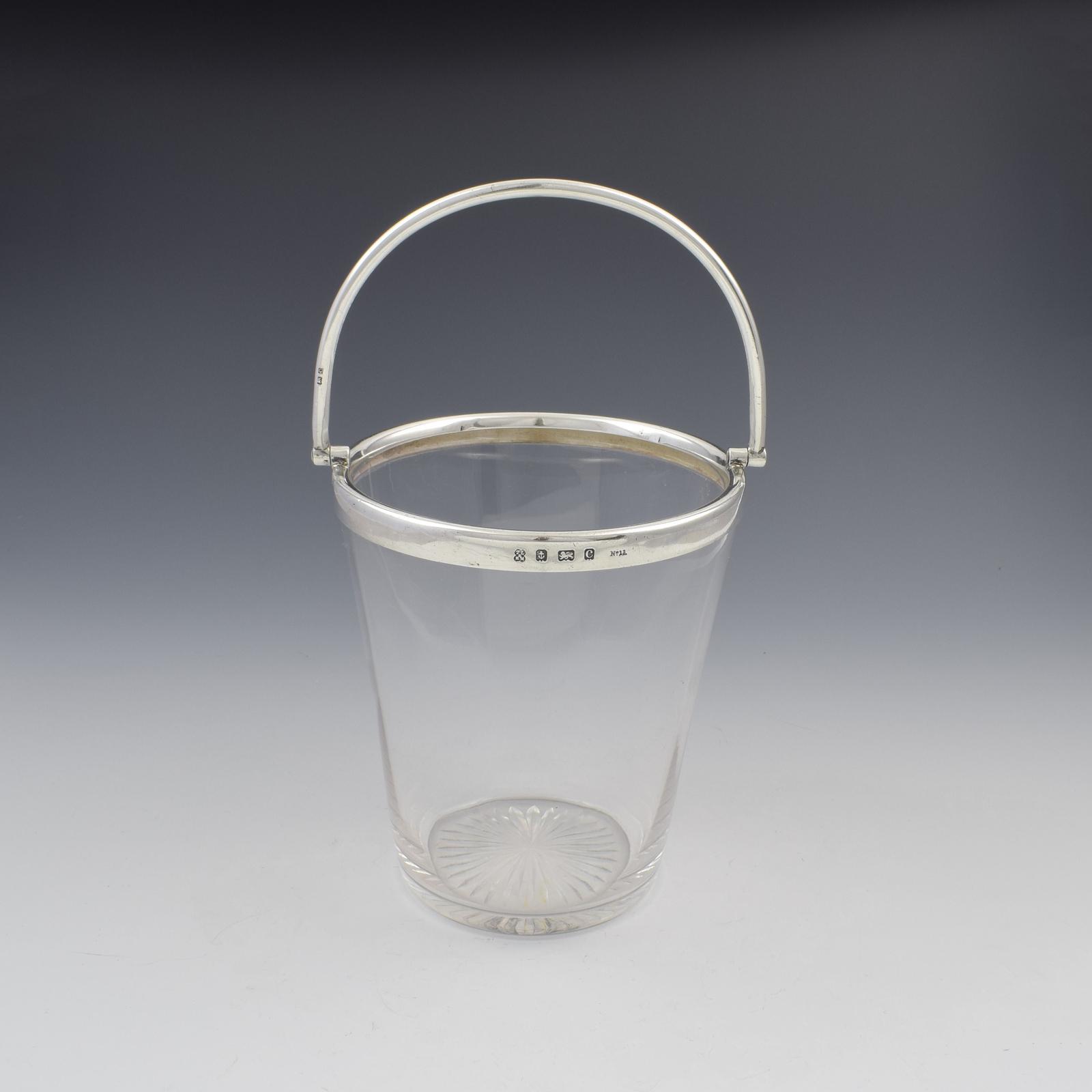 Fine Edwardian Sterling Silver Mounted Cut Glass Ice Pail Bucket