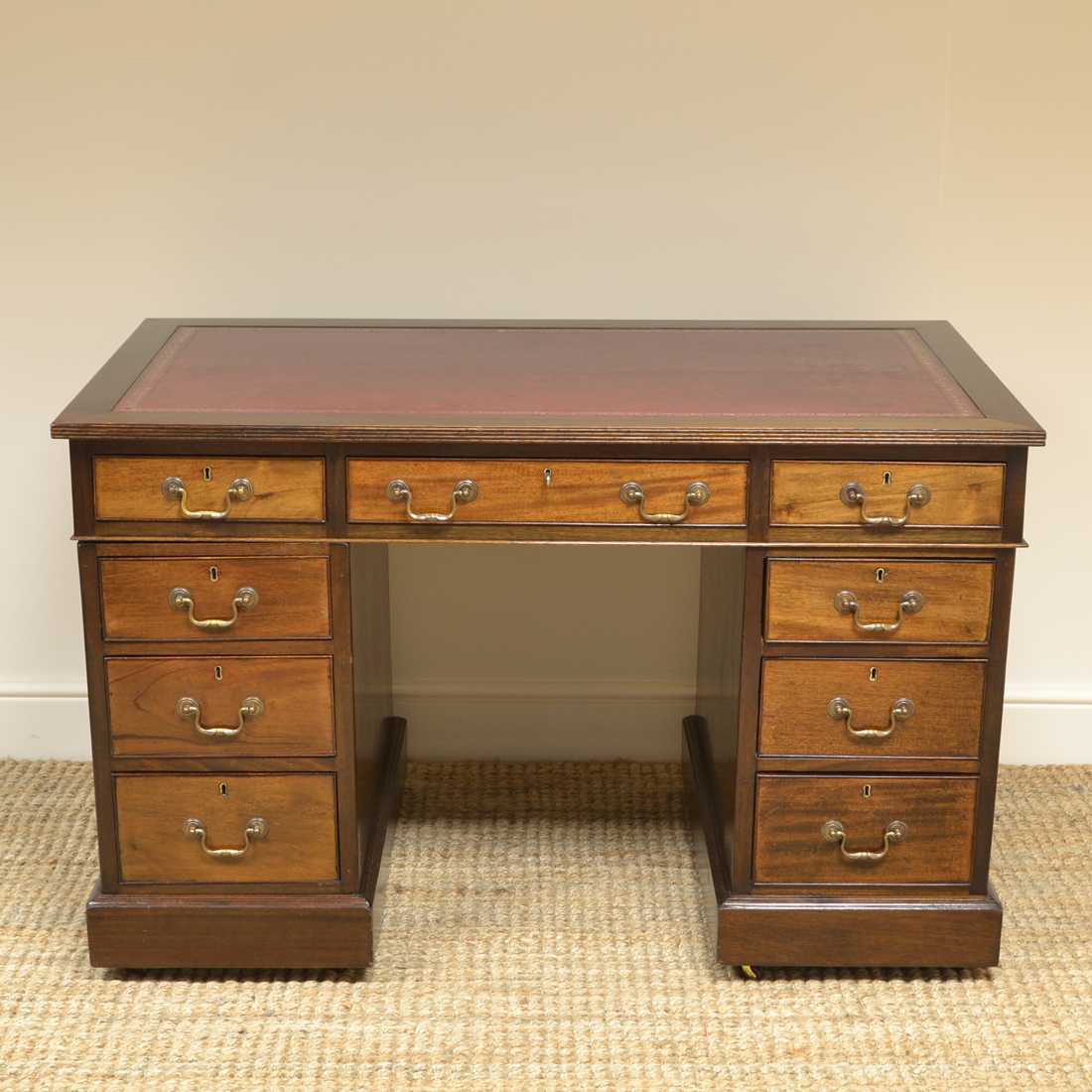 Fine Edwardian Walnut Leather Topped Writing Desk