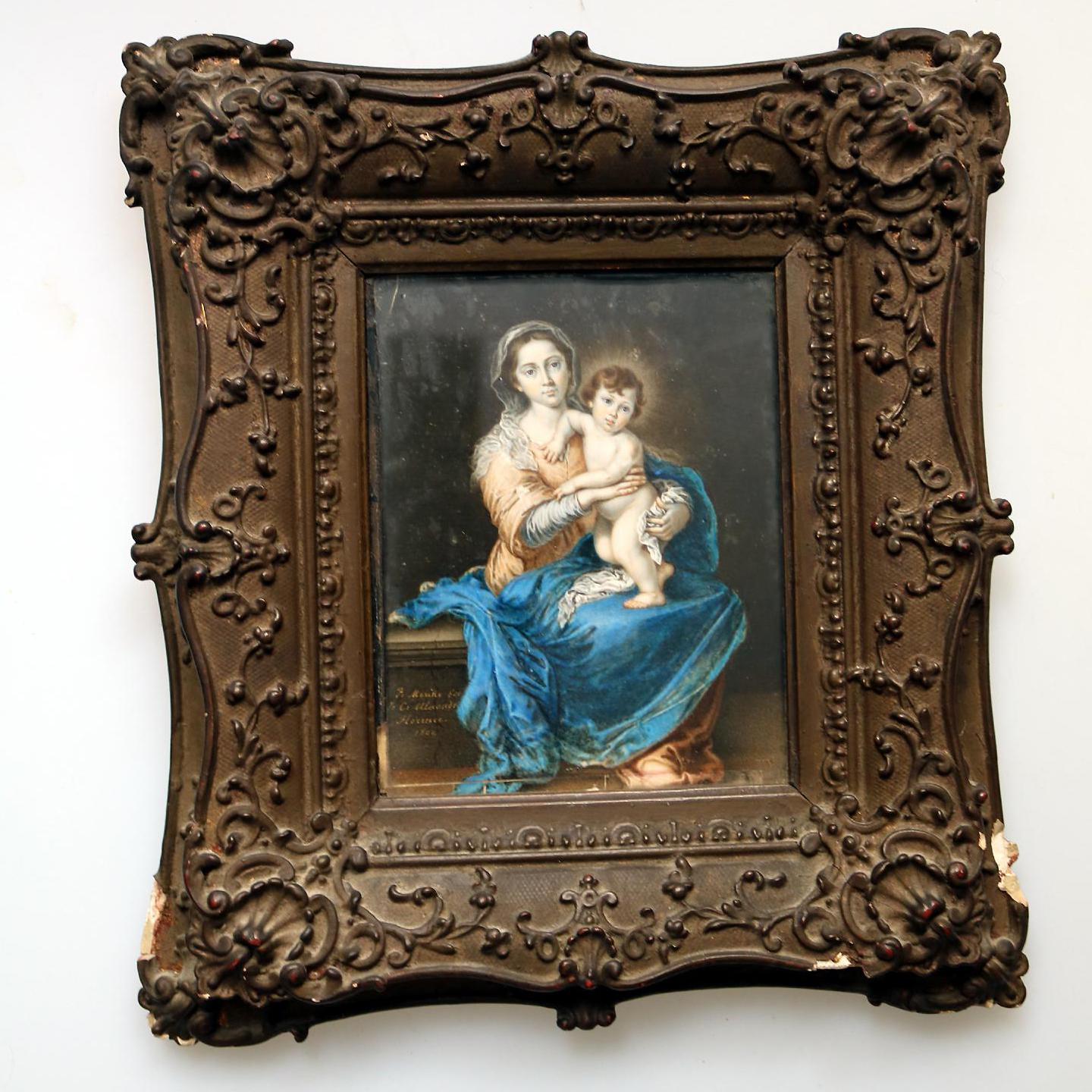 Fine Florence Grand Tour Portrait Miniature Oil After Murillo 19th Century