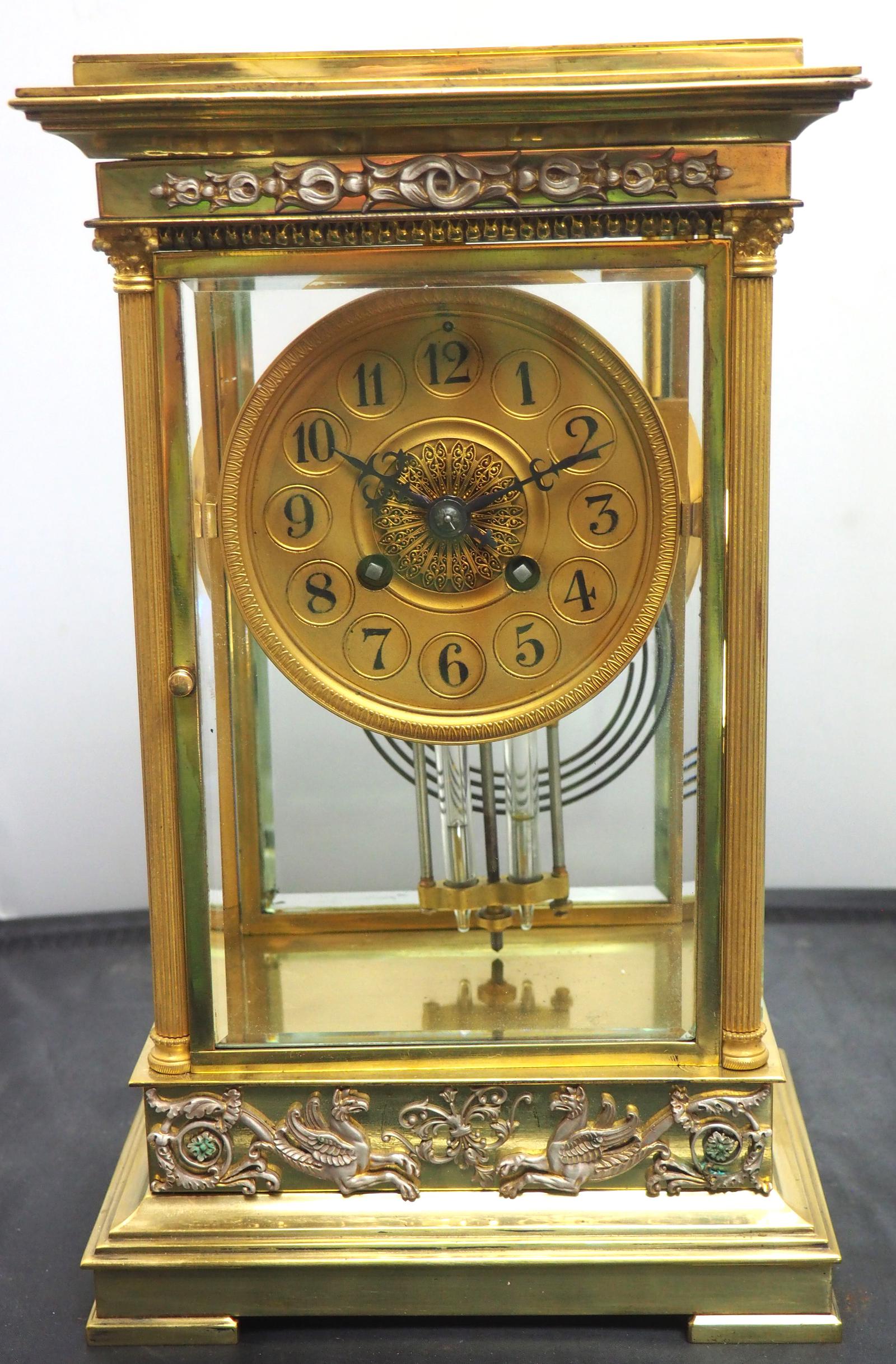 Fine French Table Regulator with Compensating Pendulum 8 Day 4 Glass Mantel Clock