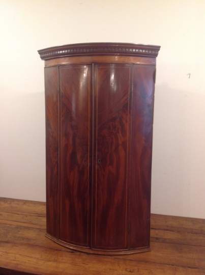 Fine George III Mahogany & Satinwood Inlaid Bowfronted Hanging Corner Cupboard