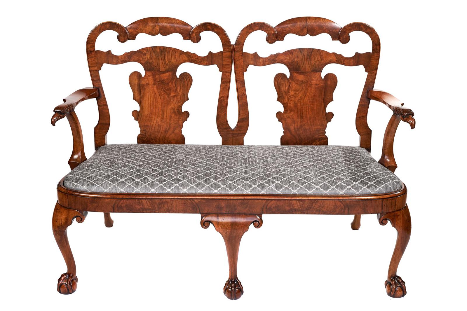 Fine Georgian Revival Walnut Chair back Settee,  with carved Eagle heads c.1900 (1 of 7)