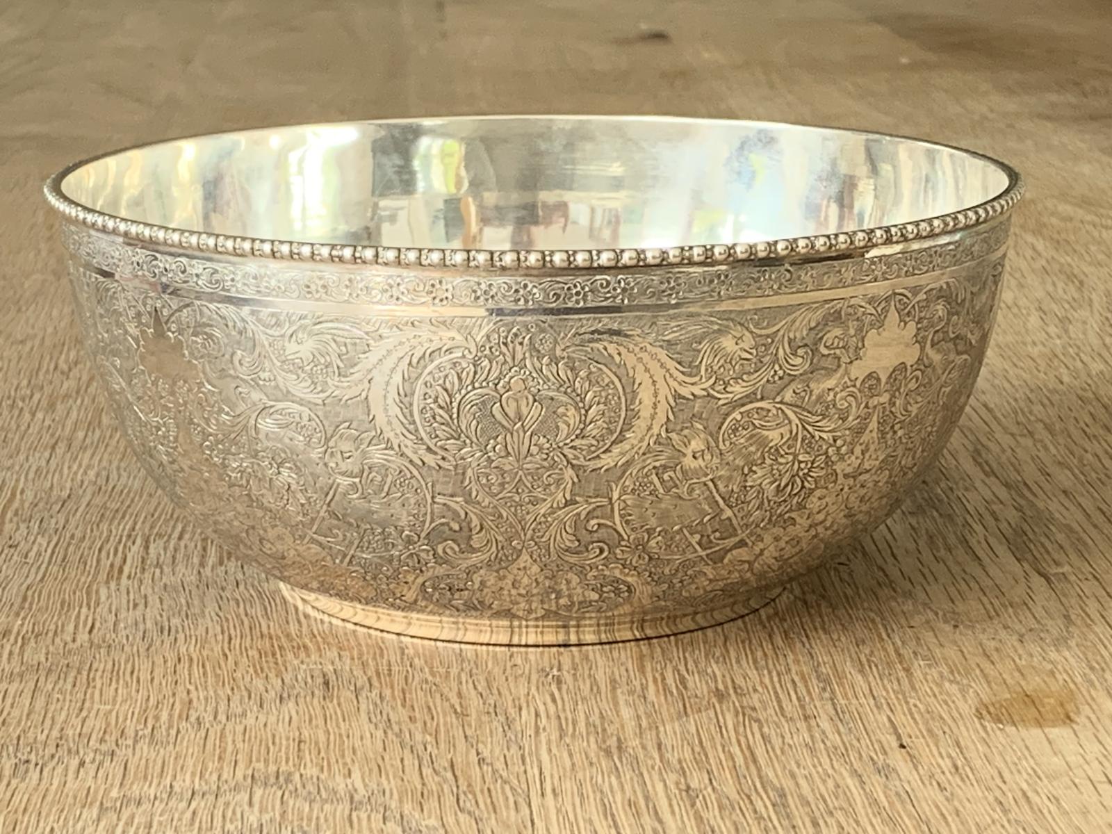 Fine Hand Engraved Early 20th Century Persian Isfahan Silver Bowl Makers Mark رضا Reza