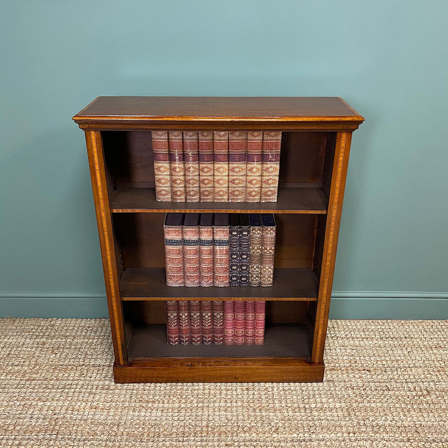 Fine Inlaid Victorian Mahogany Antique Open Bookcase