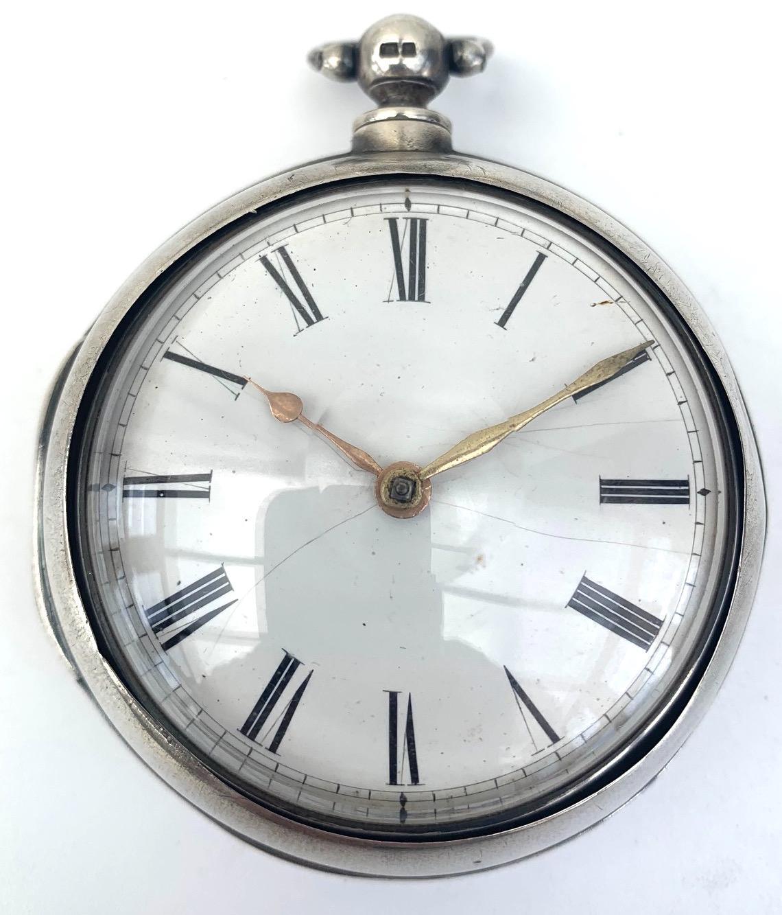 Fine Large Antique Silver Pair Case Pocket Watch Fusee Verge Escapement Key Wind