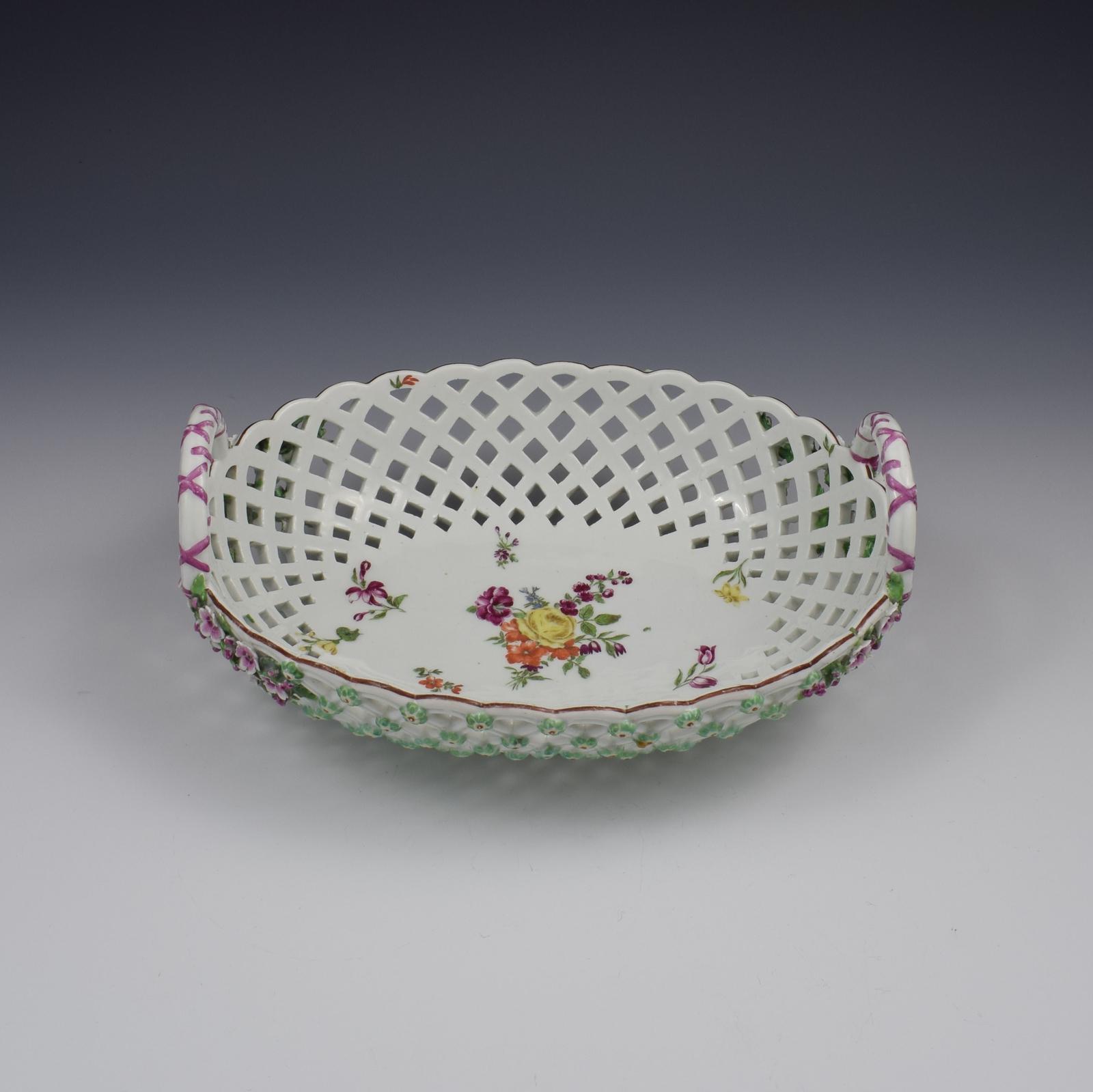Fine Large Chelsea Red Anchor Porcelain Basket c.1750-1758