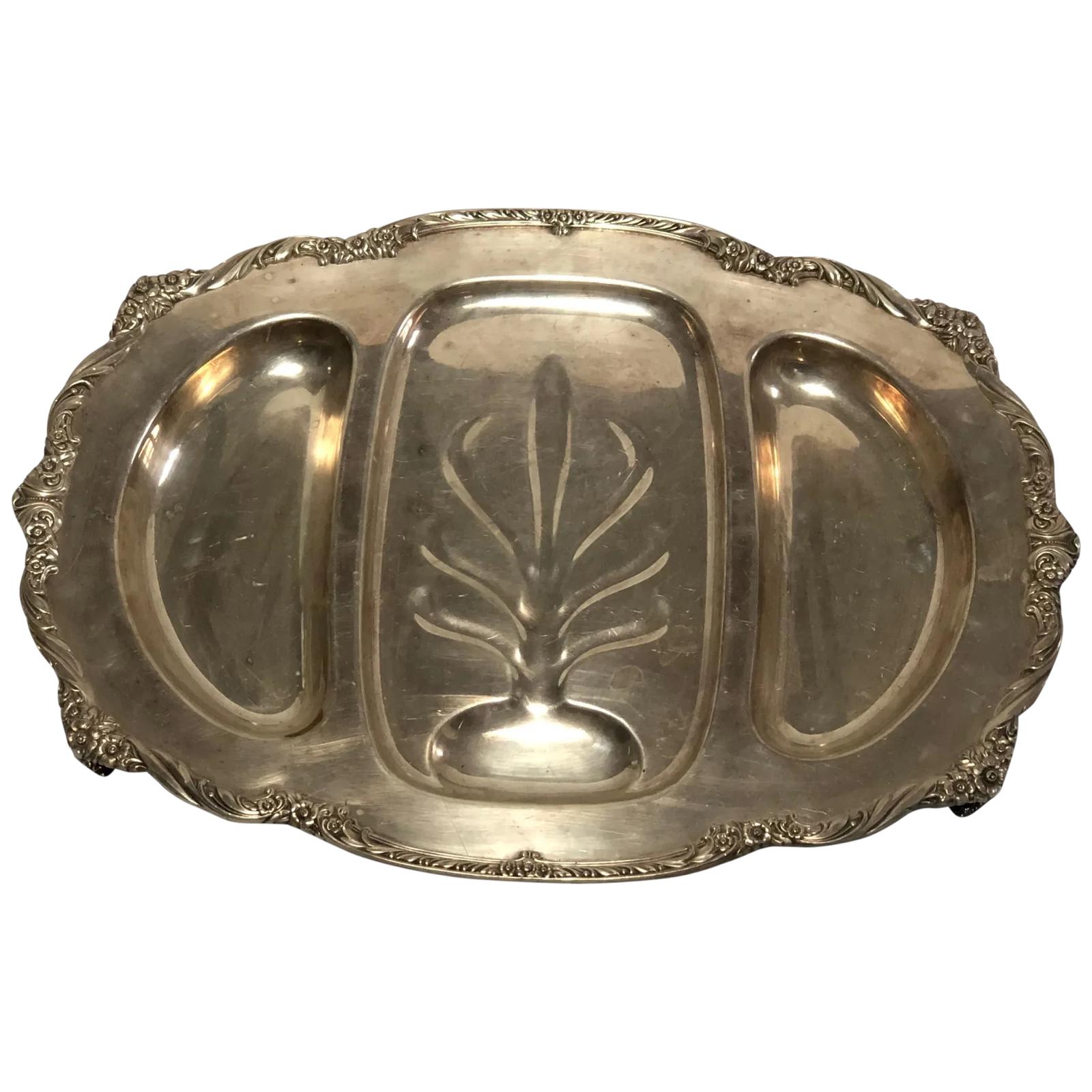 Fine Large English Georgian Revival Silver Plate Acanthus Repousse Meat Salver