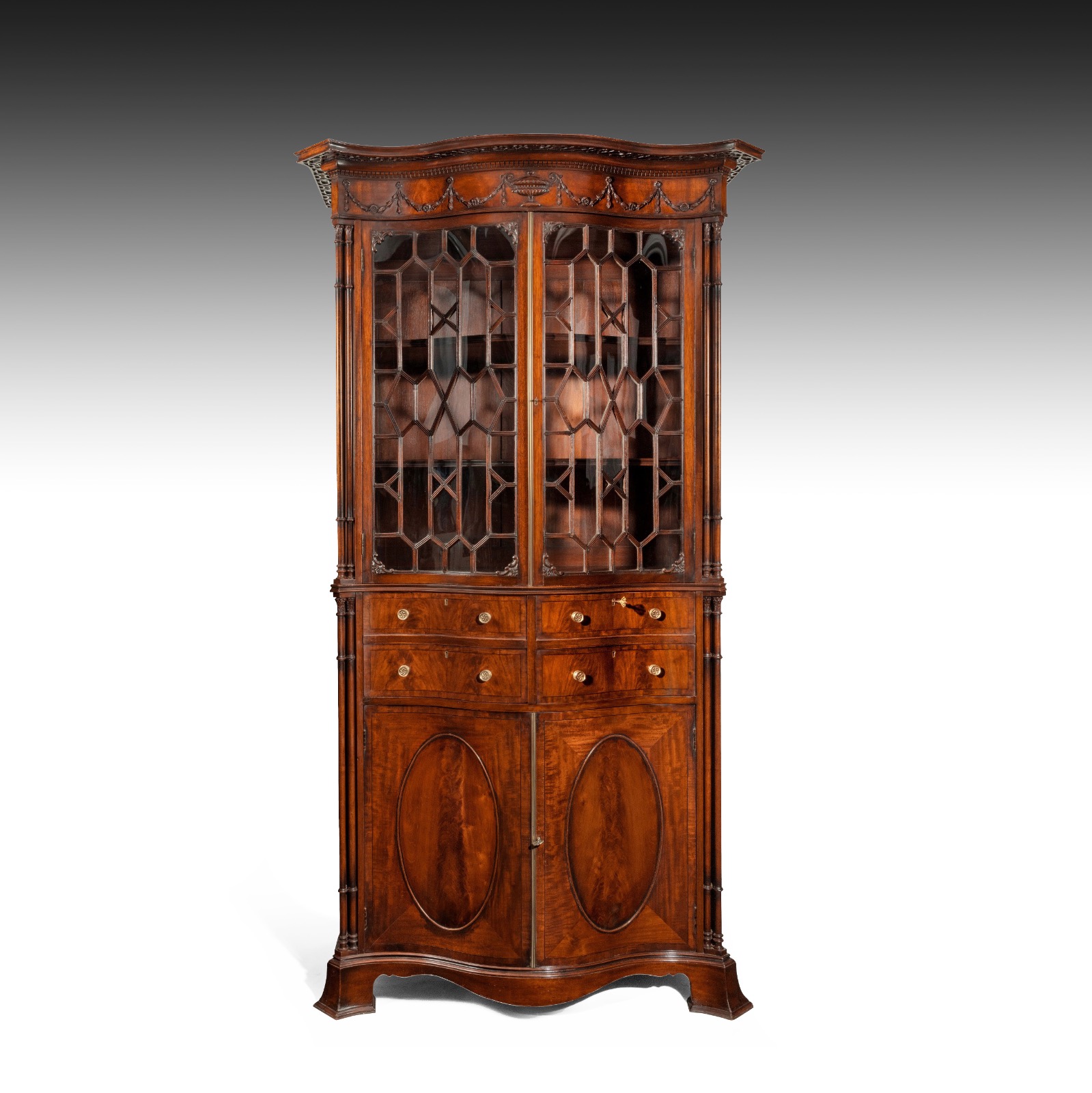 Fine Large Serpentine Mahogany Secretaire Bookcase in the Manner of Thomas Chippendale