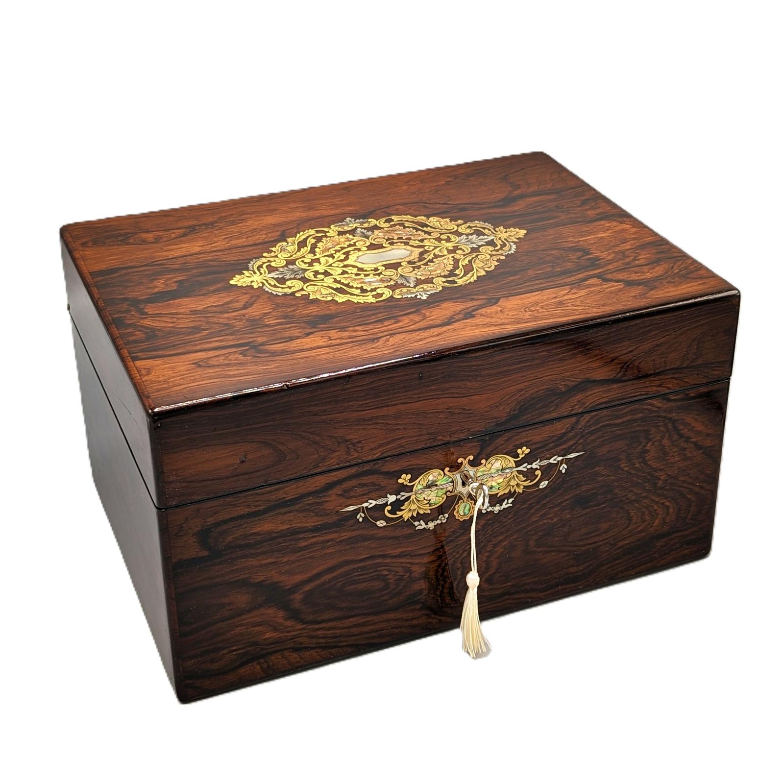 Fine Large Victorian Rosewood & Inlaid Jewellery Box