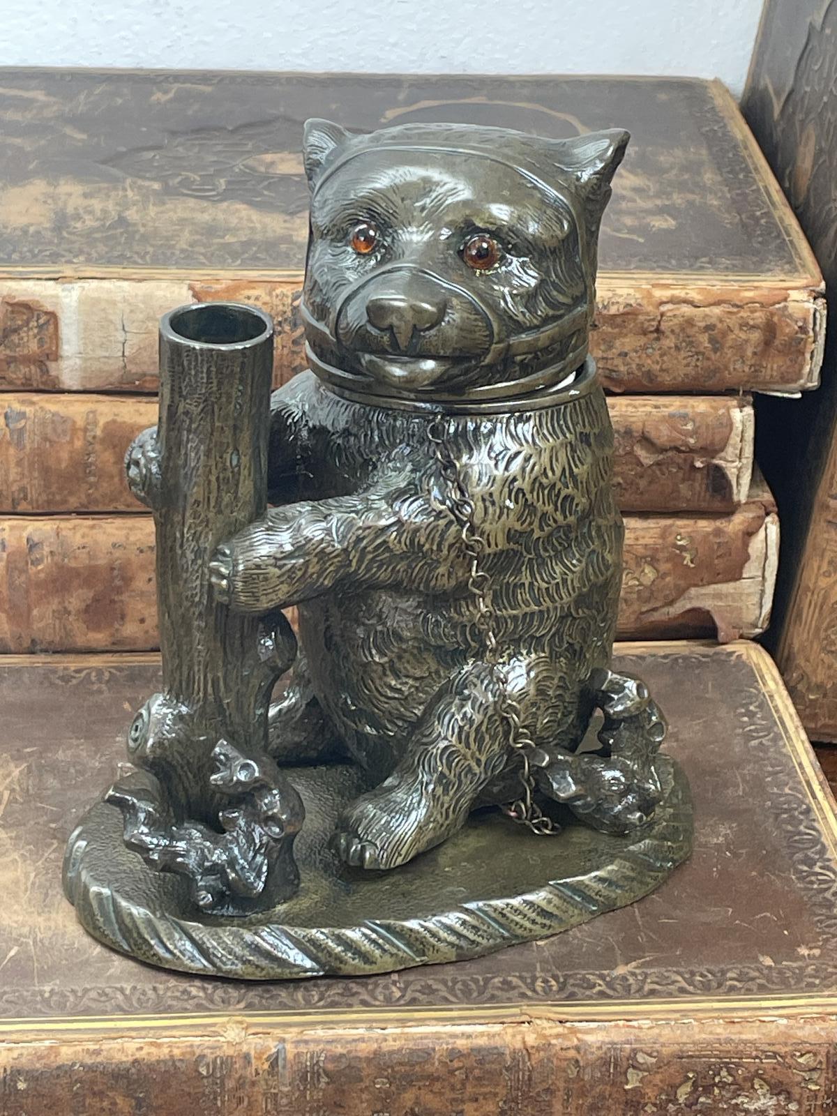 Fine Large Victorian Warwick Chained Brass Bear Inkwell 1880-1890