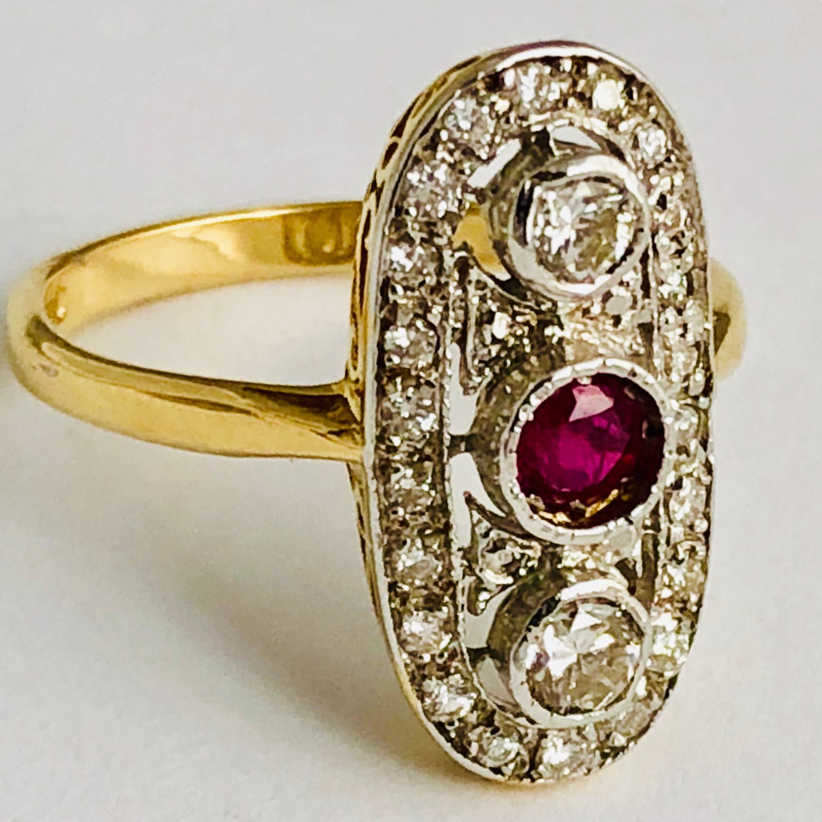 Fine Large Vintage Ruby 0.84ct Diamond Cluster 18ct Gold Ring