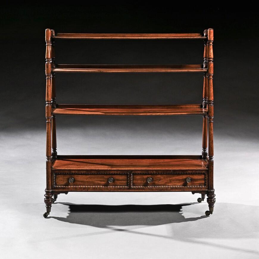 Fine Late Regency Mahogany Waterfall Open Bookcase