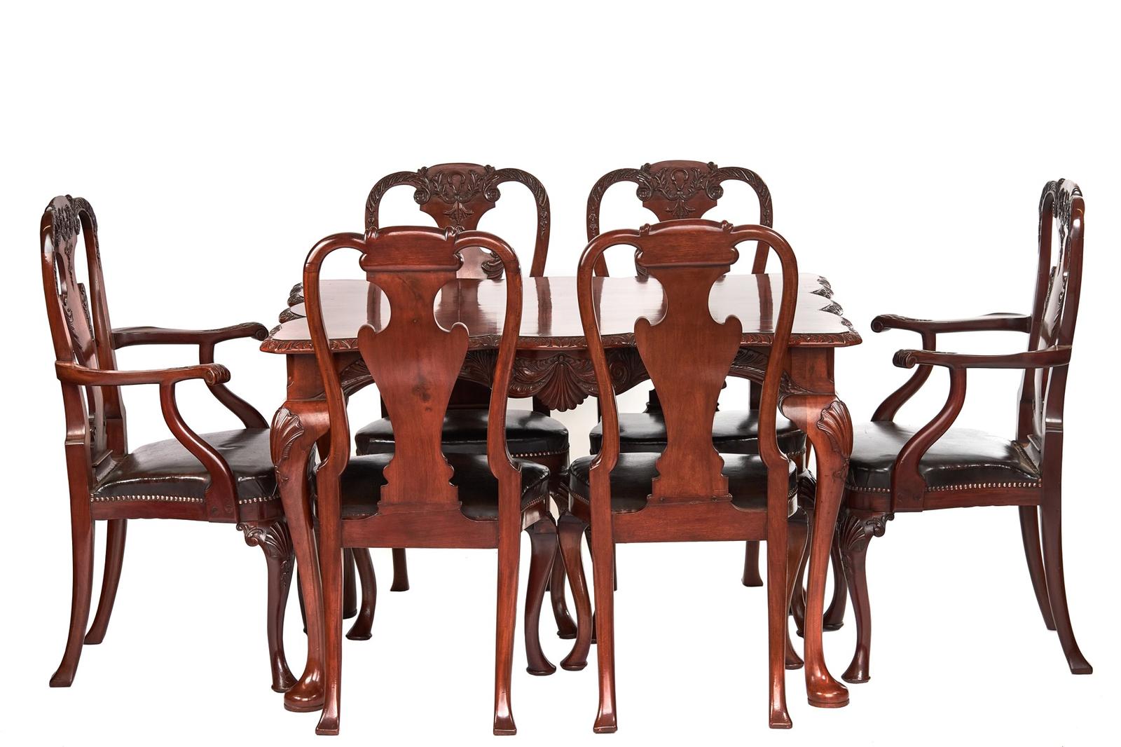 Fine Mahogany & Carved Dining Table & Set 6 Dining Chairs c1920