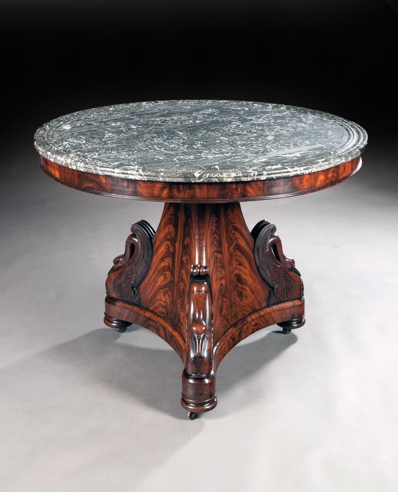 Fine Mahogany French Empire Marble Topped Gueridon