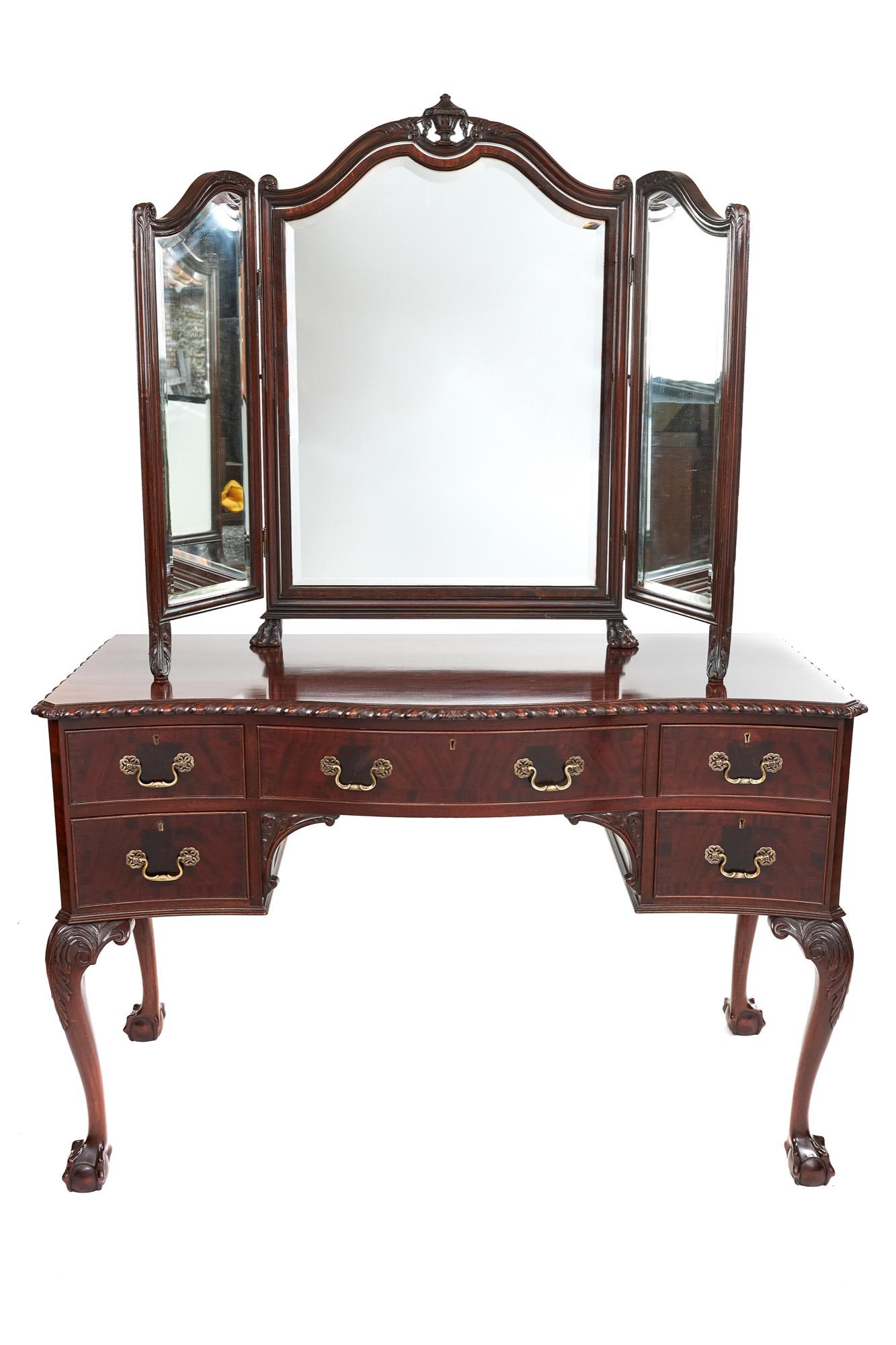 Fine Mahogany Kneehole Dressing Table in the manner of Chippendale c.1920