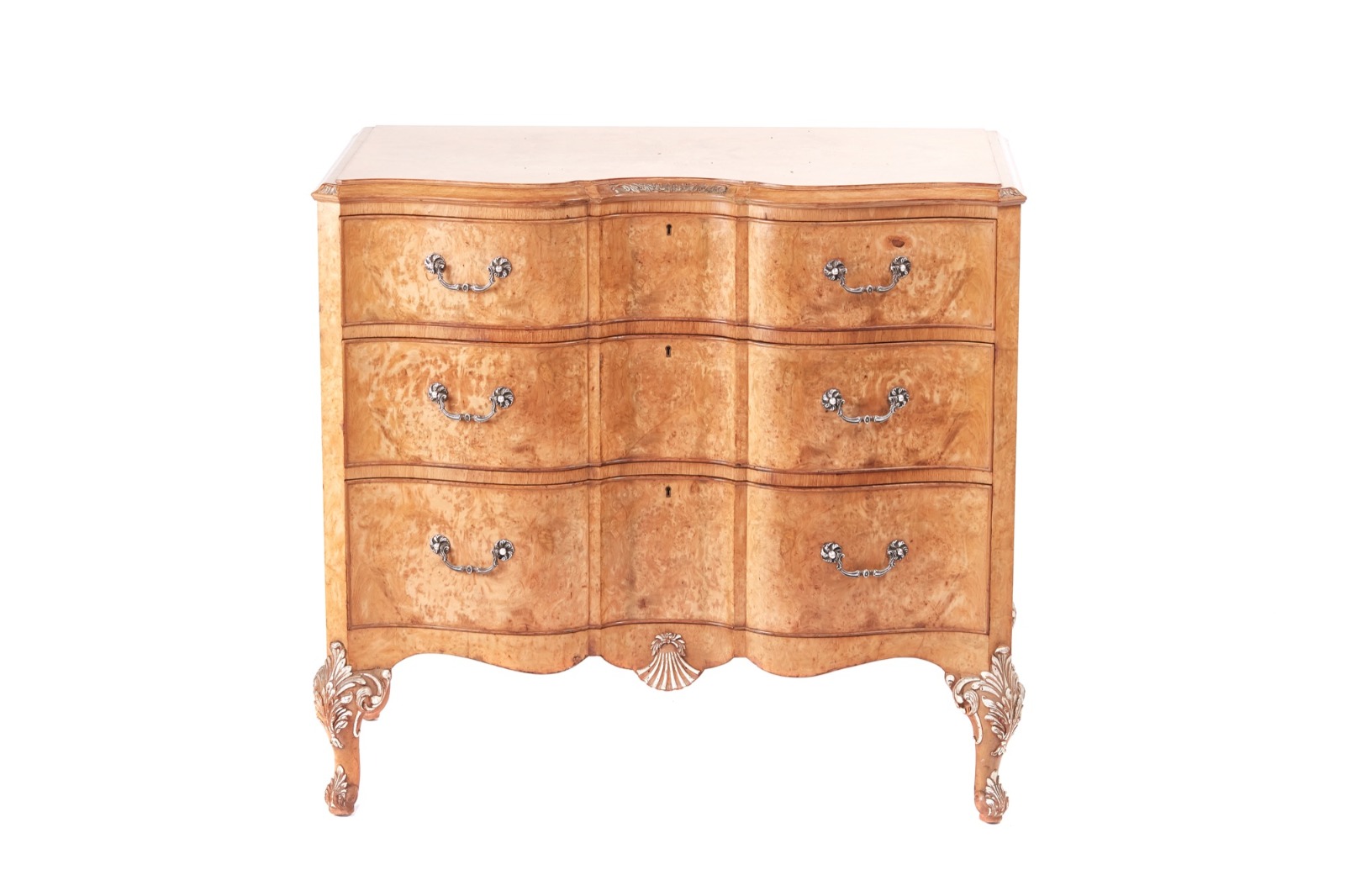 Fine Maple Serpentine 3 Drawer Chest by Hille c.1920