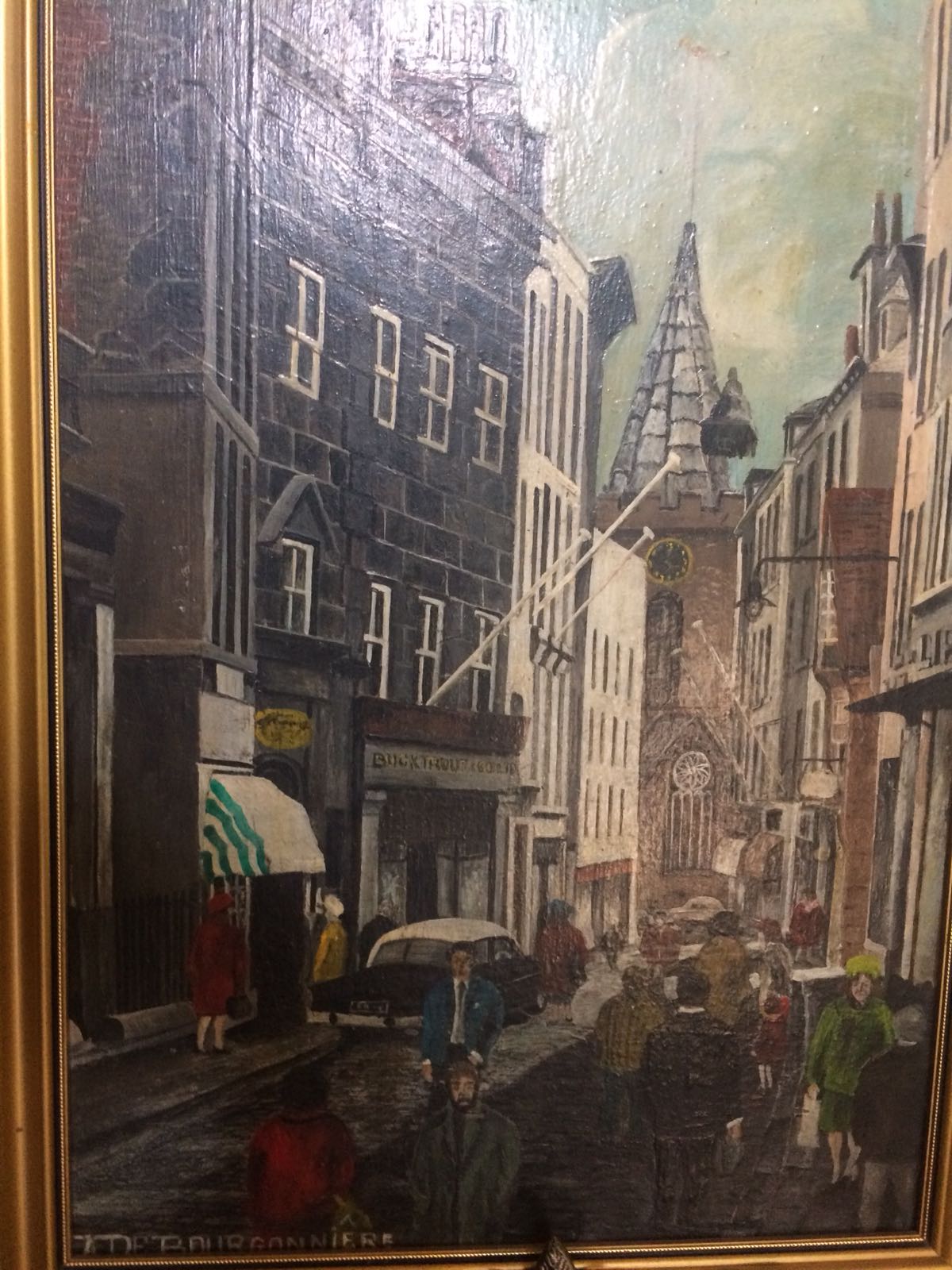 Fine Oil Painting St Peter Port Guernsey High Street Fashionable 1960'S Signed