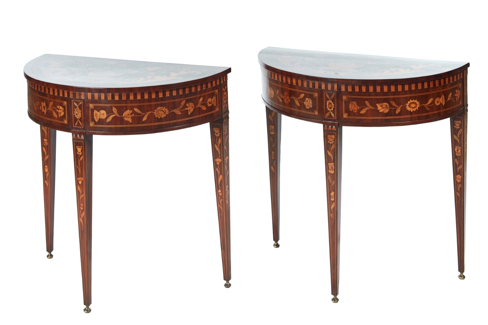 Fine Pair of 18th Century Dutch Marquetry Console Tables