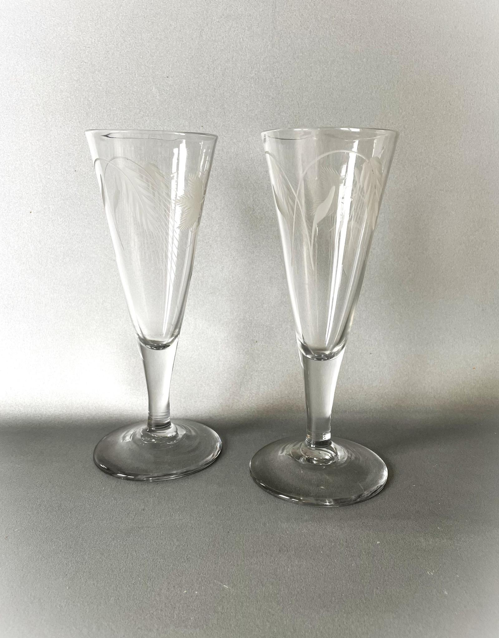Fine Pair of 18th Century Etched Ale Glasses (1 of 5)