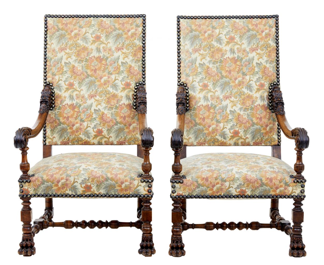 Fine Pair of 19th Century French Carved Walnut Armchairs (1 of 7)