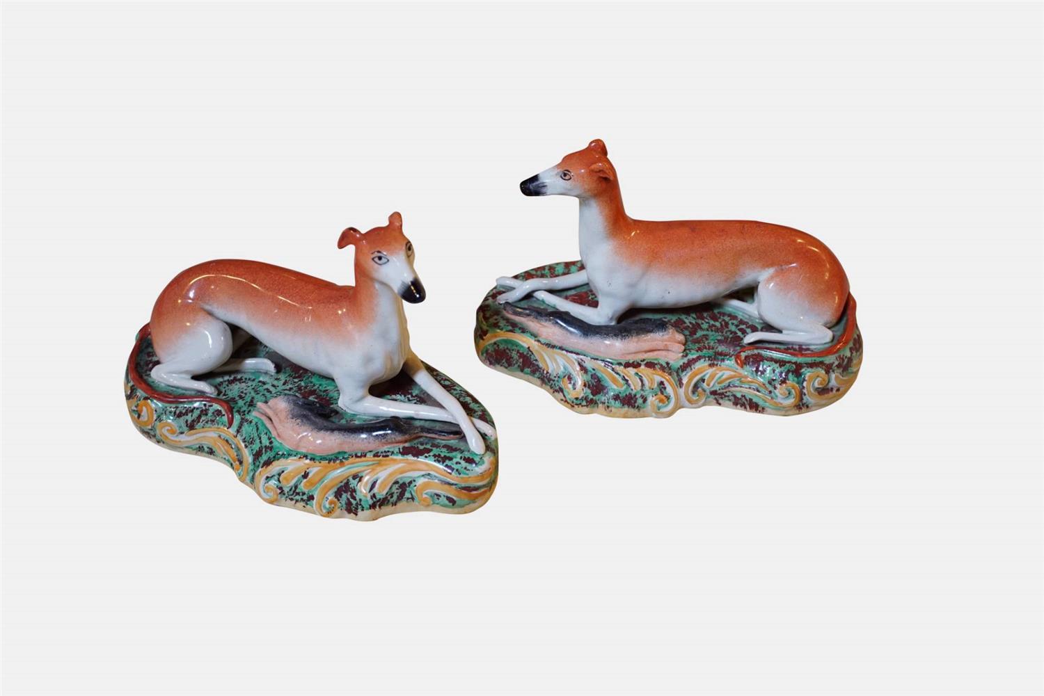 Fine Pair of 19th Century Recumbent Greyhounds (1 of 1)