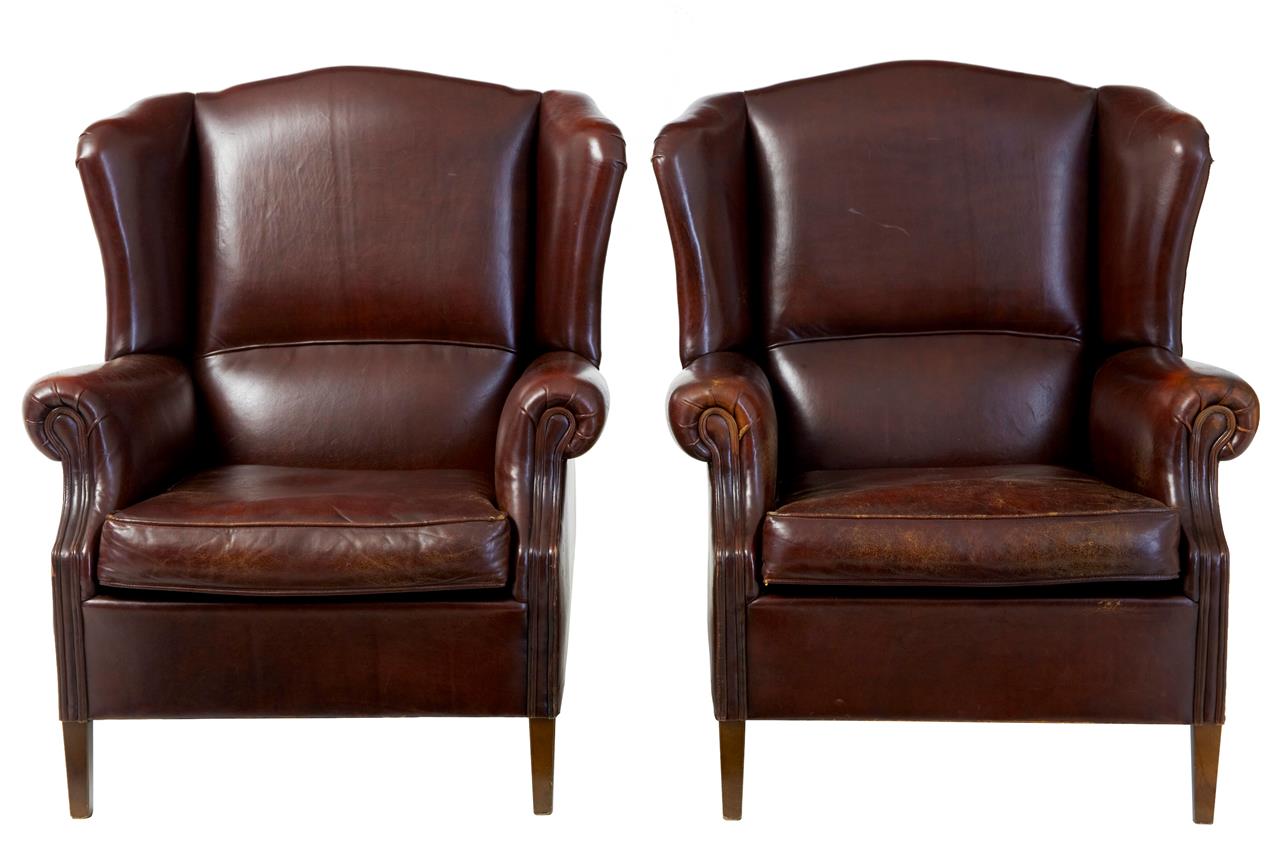 Fine Pair of 20th Century Leather Wingback Armchairs (1 of 1)