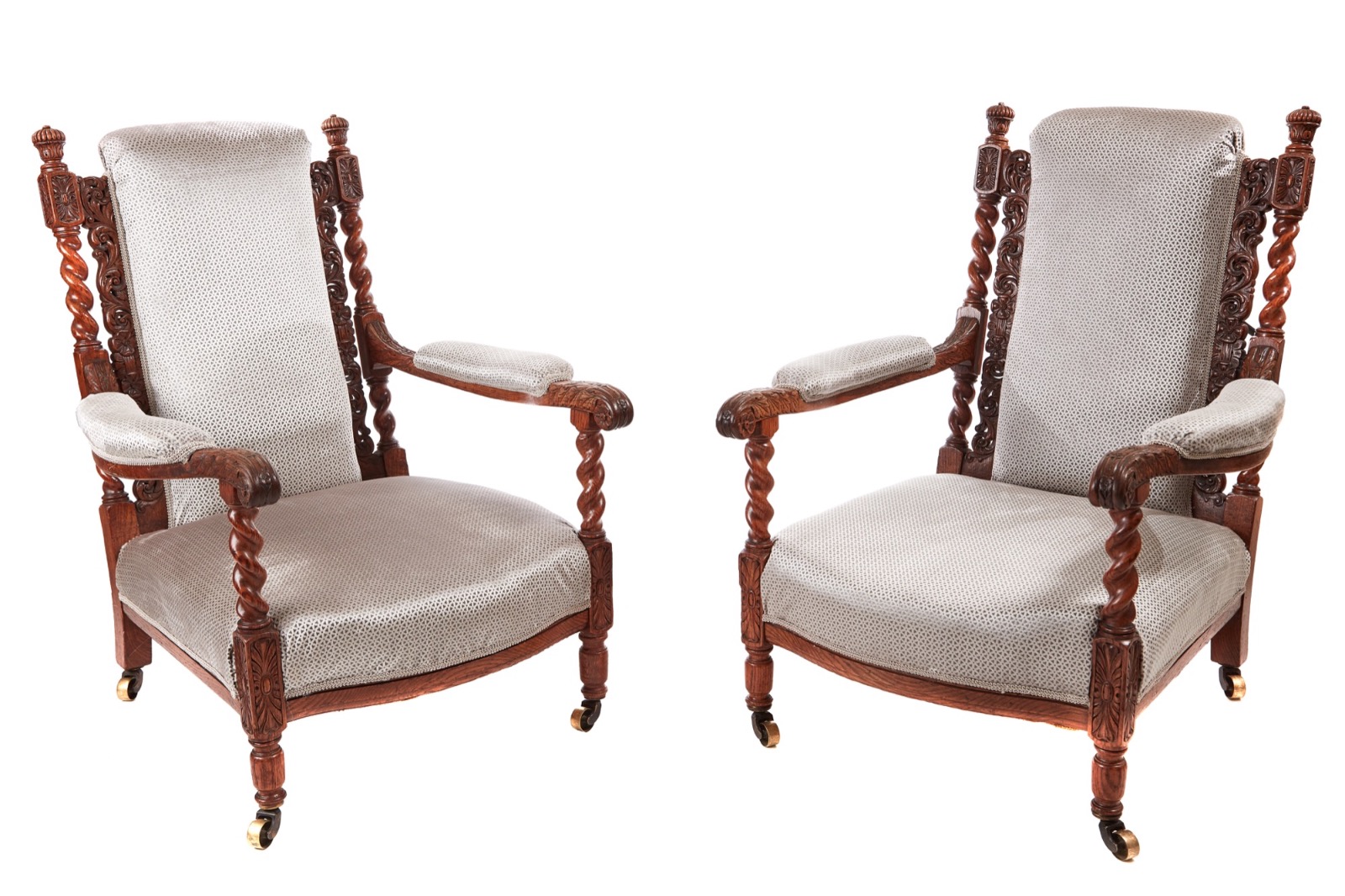 Fine Pair of Antique Carved Oak Armchairs c.1880
