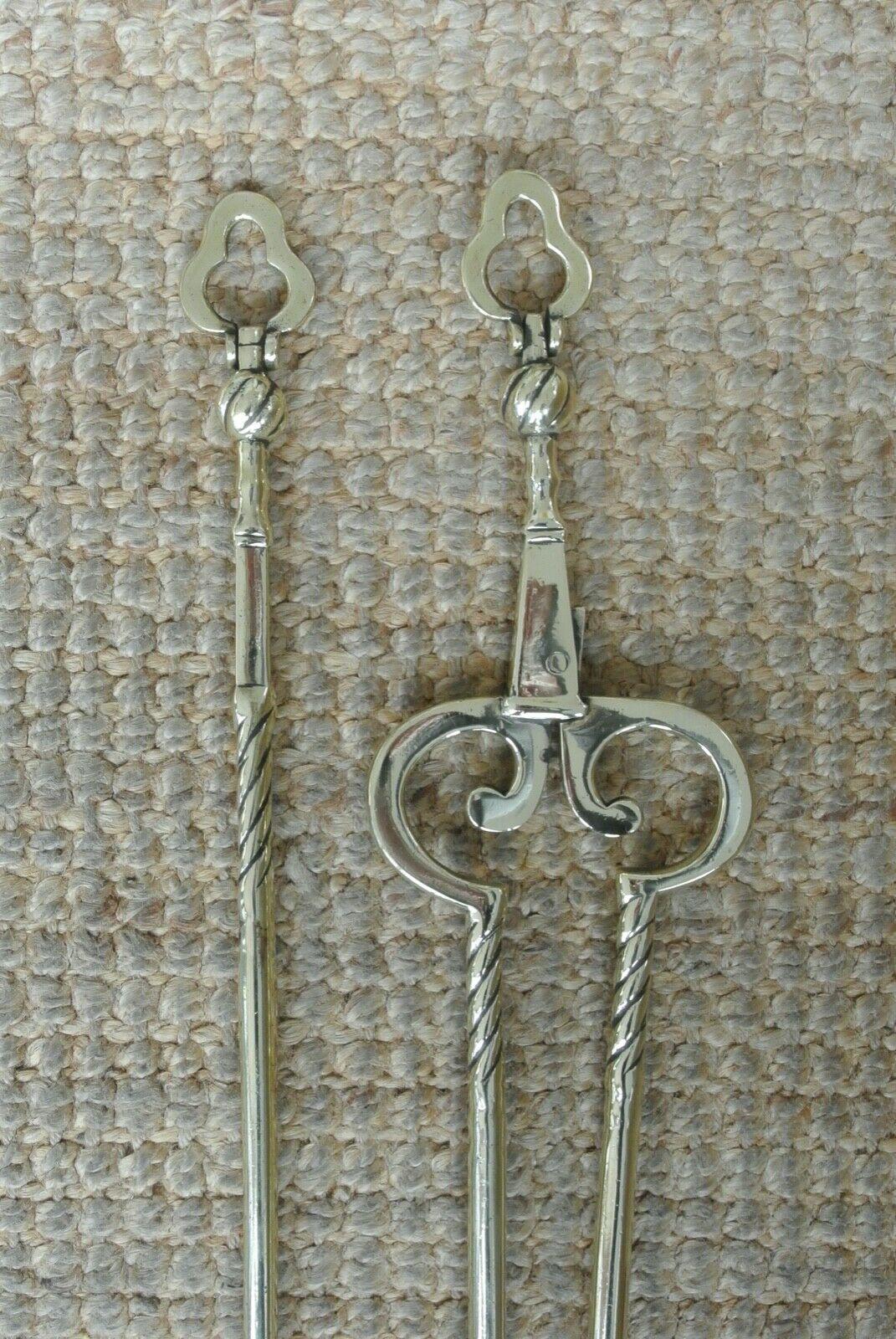 Fine Pair of Antique Georgian Brass Fire Irons Companion Set Poker Tongs