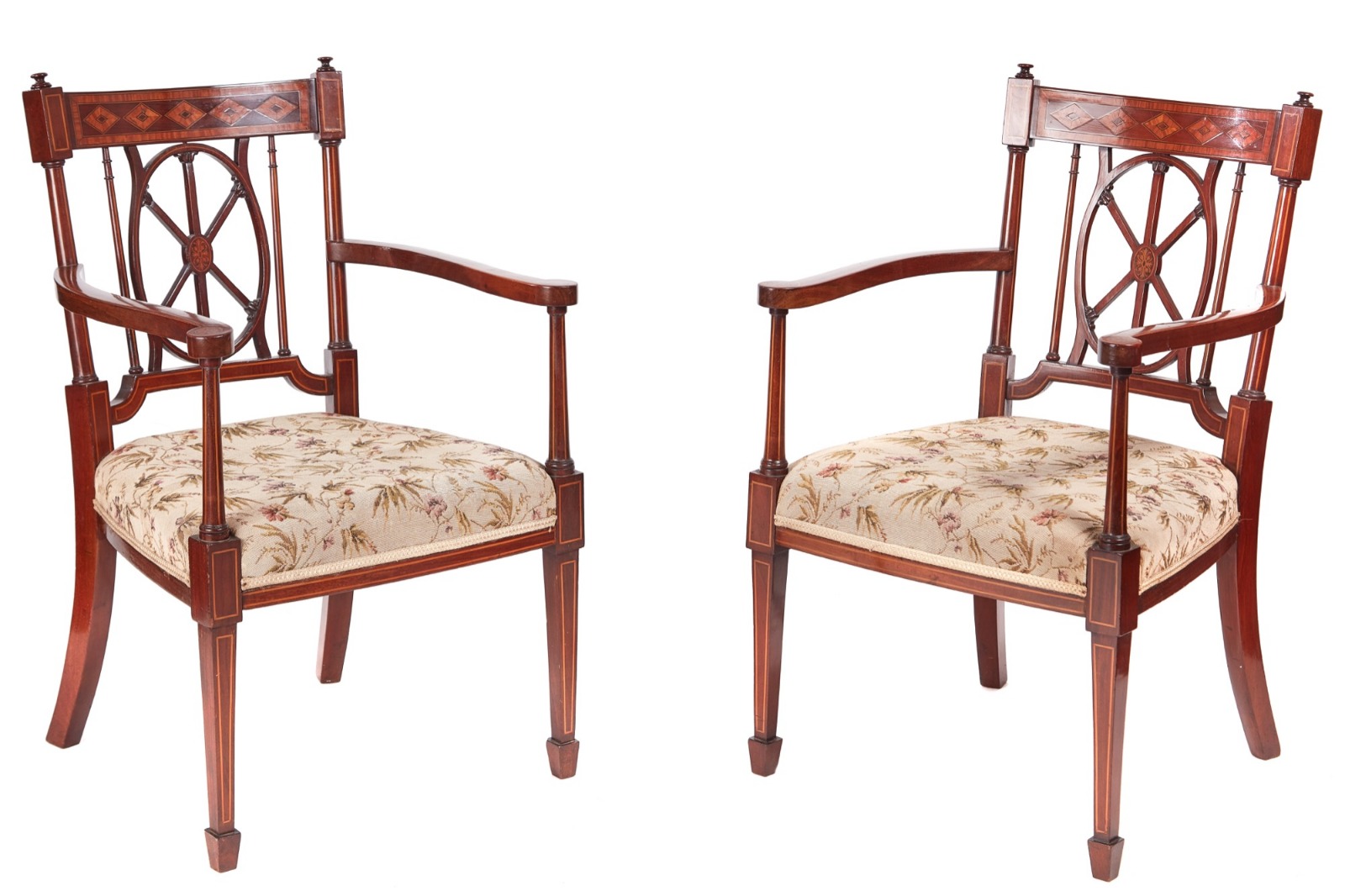 Fine Pair of Antique Mahogany Inlaid Arm / Desk Chair